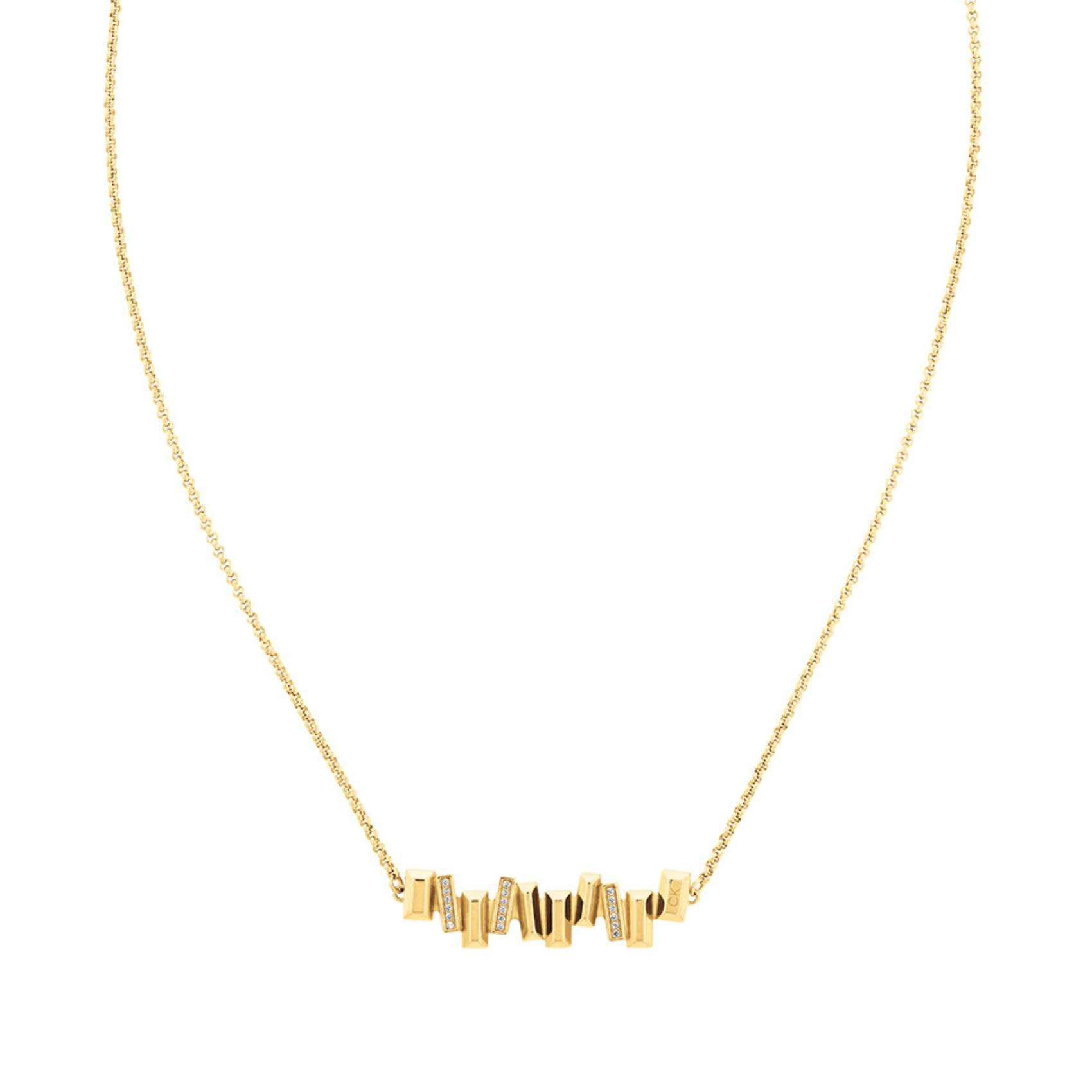 Γυναικείο Κολιέ Calvin Klein 35000229 κατασκευασμένο από ατσάλι σε χρυσό χρώμα διακοσμημένο με γεωμετρικό στοιχείο με λαμπερά ζιργκόν. Αυτό το γυναικείο κολιέ με την ρυθμιζόμενη αλυσίδα μήκους 40-50cm είναι ιδανικό για να φορεθεί μόνο του ή να συνδυαστεί και με άλλα κοσμήματα για το απόλυτο layering.