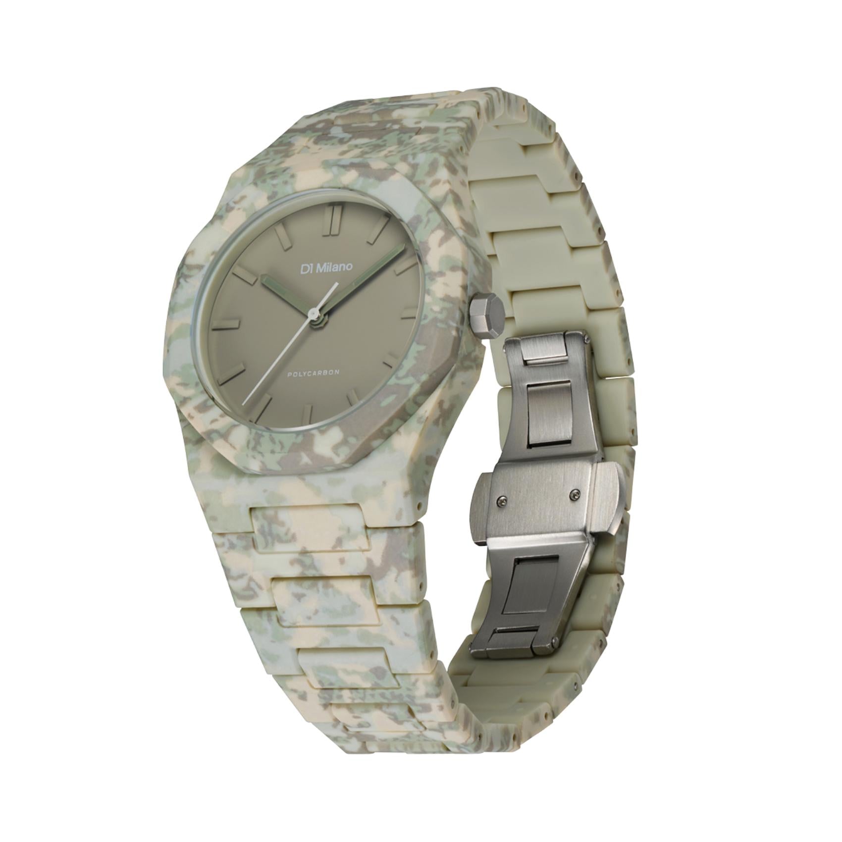 Ρολόι D1 Milano Polycarbon Forest Camo 40.5 mm D1-PCBJ38 Με Χακί Μπρασελέ