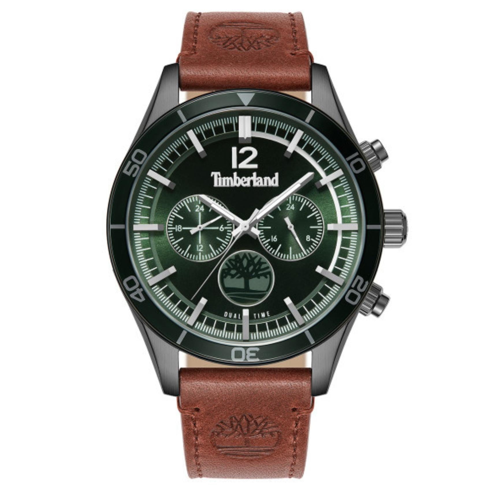 Ανδρικό ρολόι Timberland Ashmont TDWGF0011203 χρονογράφος, που συνδυάζει καφέ δερμάτινο λουράκι και πράσινο καντράν διαμέτρου 46mm. Έχει τζάμάκι από ορυκτό κρύσταλλο ειδικής σκλήρυνσης, μηχανισμό μπαταρίας quartz με διπλής ώρας, ενώ είναι αδιάβροχο με στεγανότητα στα 50M/5ΑΤΜ που το καθιστά κατάλληλο για κολύμβηση.