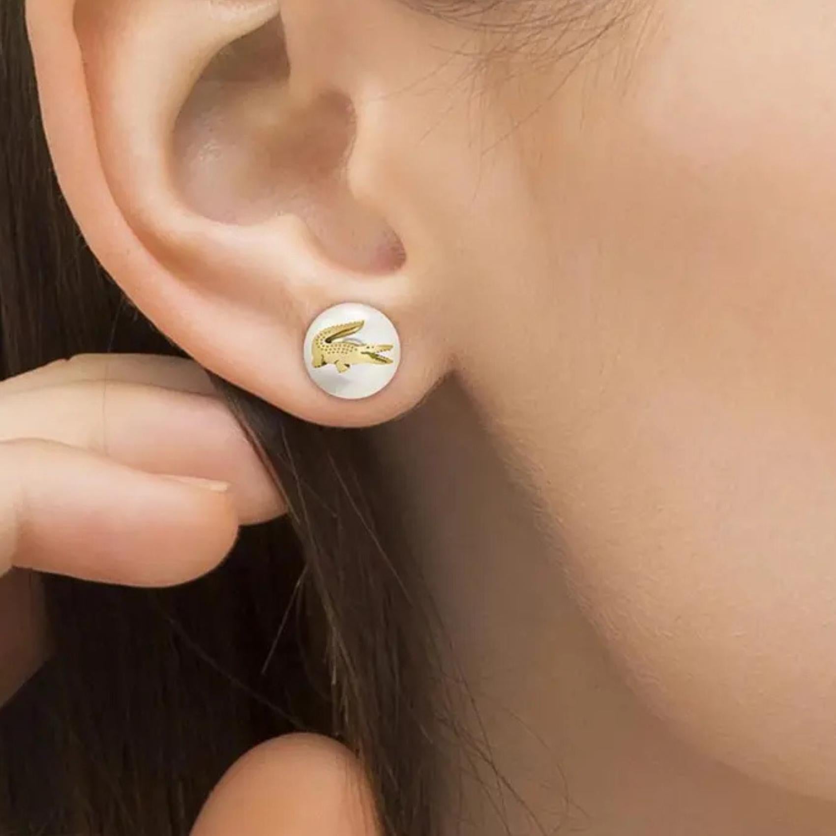 Καρφωτά γυναικεία σκουλαρίκια Lacoste 2040432 από ανοξείδωτο ατσάλι με λευκό μαργαριτάρι διακοσμημένα με το λογότυπο του brand σε χρυσό! Τα σκουλαρίκια αποστέλλονται σε συσκευασία δώρου, με πιστοποιητικό γνησιότητας από την επίσημη αντιπροσωπεία της Lacoste.