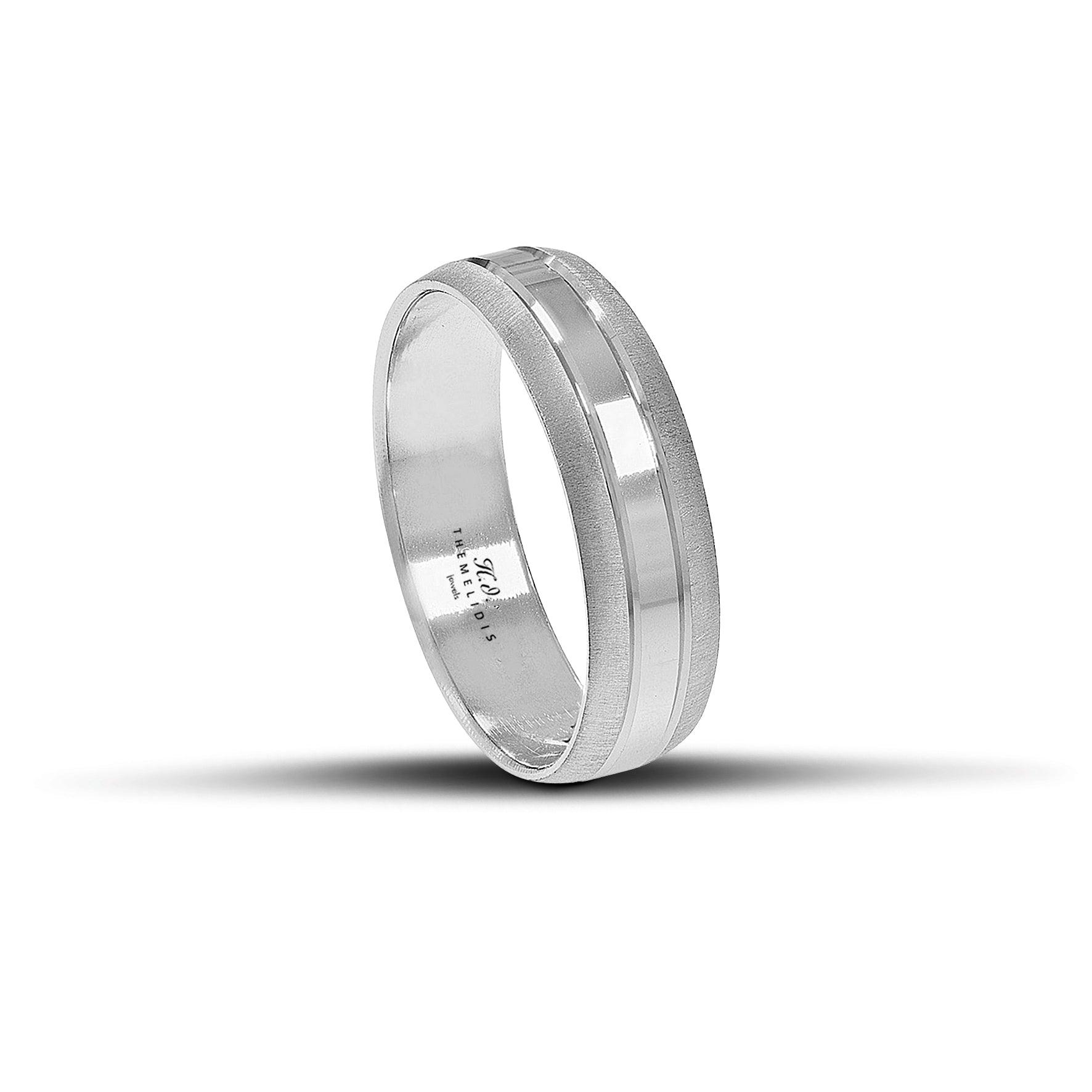 Οι μοντέρνες βέρες γάμου από λευκόχρυσο αποτελούν ένα διαχρονικό σχέδιο που συνδυάζει το ματ φινίρισμα με μια εκλεπτυσμένη λουστρέ γραμμή στο κέντρο. Το πλάτος των 6 mm και η εναλλαγή της υφής προσδίδει βάθος και κομψότητα, δημιουργώντας ένα αρμονικό παιχνίδι φωτός που αποπνέει καθαρότητα και φινέτσα.