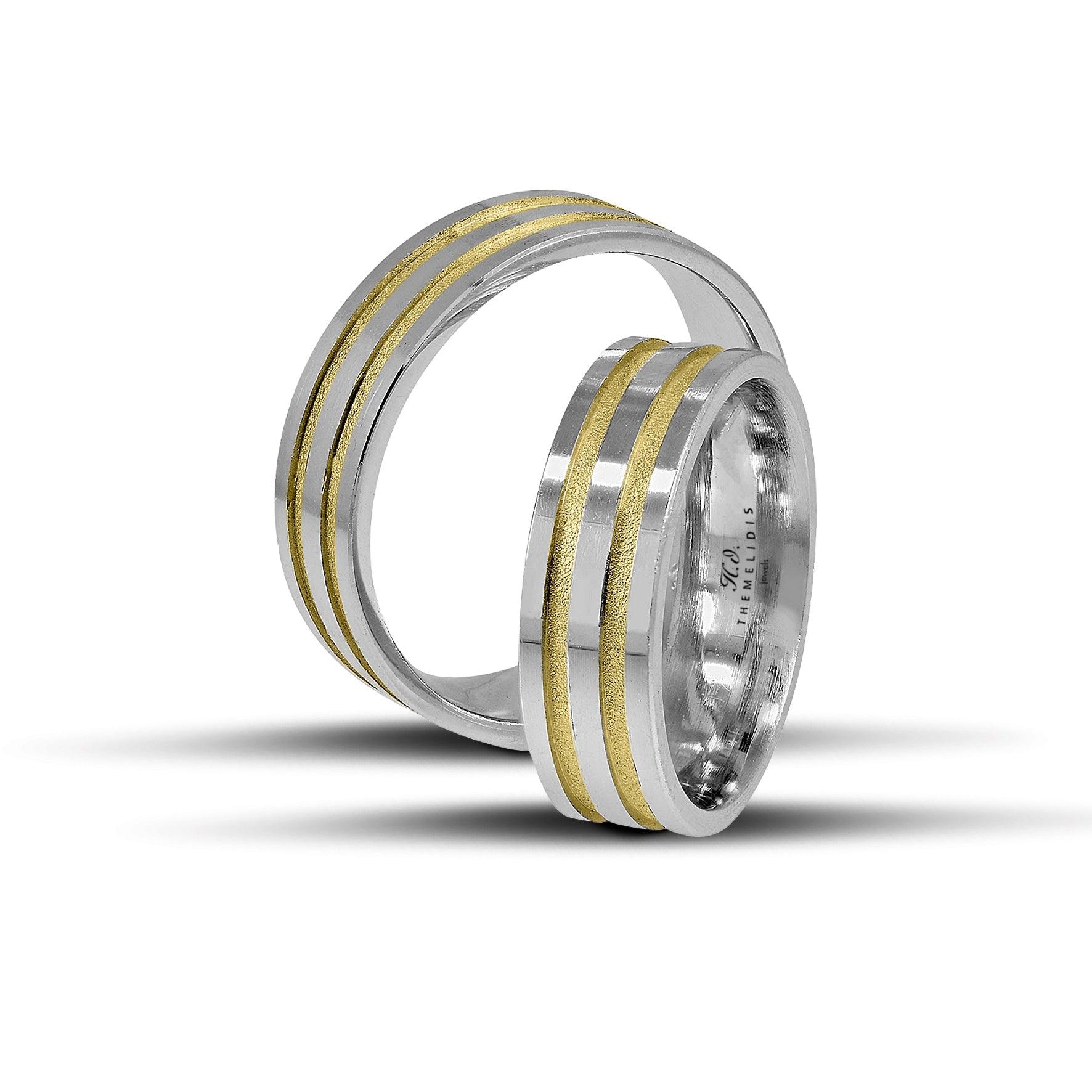 Δίχρωμες Βέρες Γάμου Λευκόχρυσες Λουστρέ με Χρυσές Ματ Γραμμές 6 mm WR235