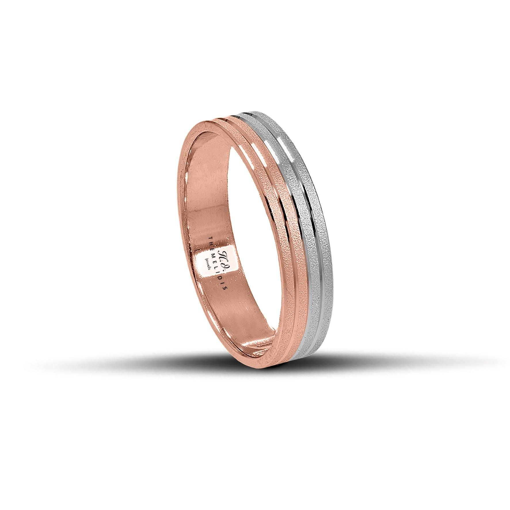 Μοντέρνες Βέρες Γάμου Ροζ Χρυσός & Λευκόχρυσος 5 mm Λουστρέ με Ματ Γραμμές WR291