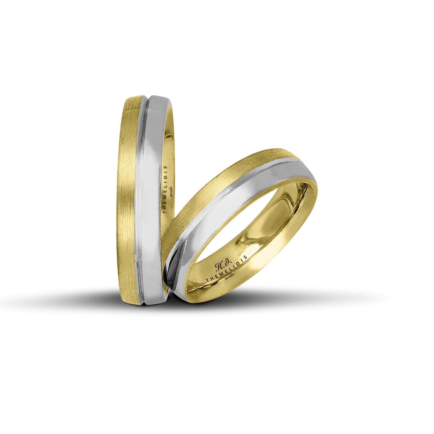 Δίχρωμες Βέρες Γάμου Χρυσές & Λευκόχρυσες 5 mm Σαγρέ & Ματ WR196