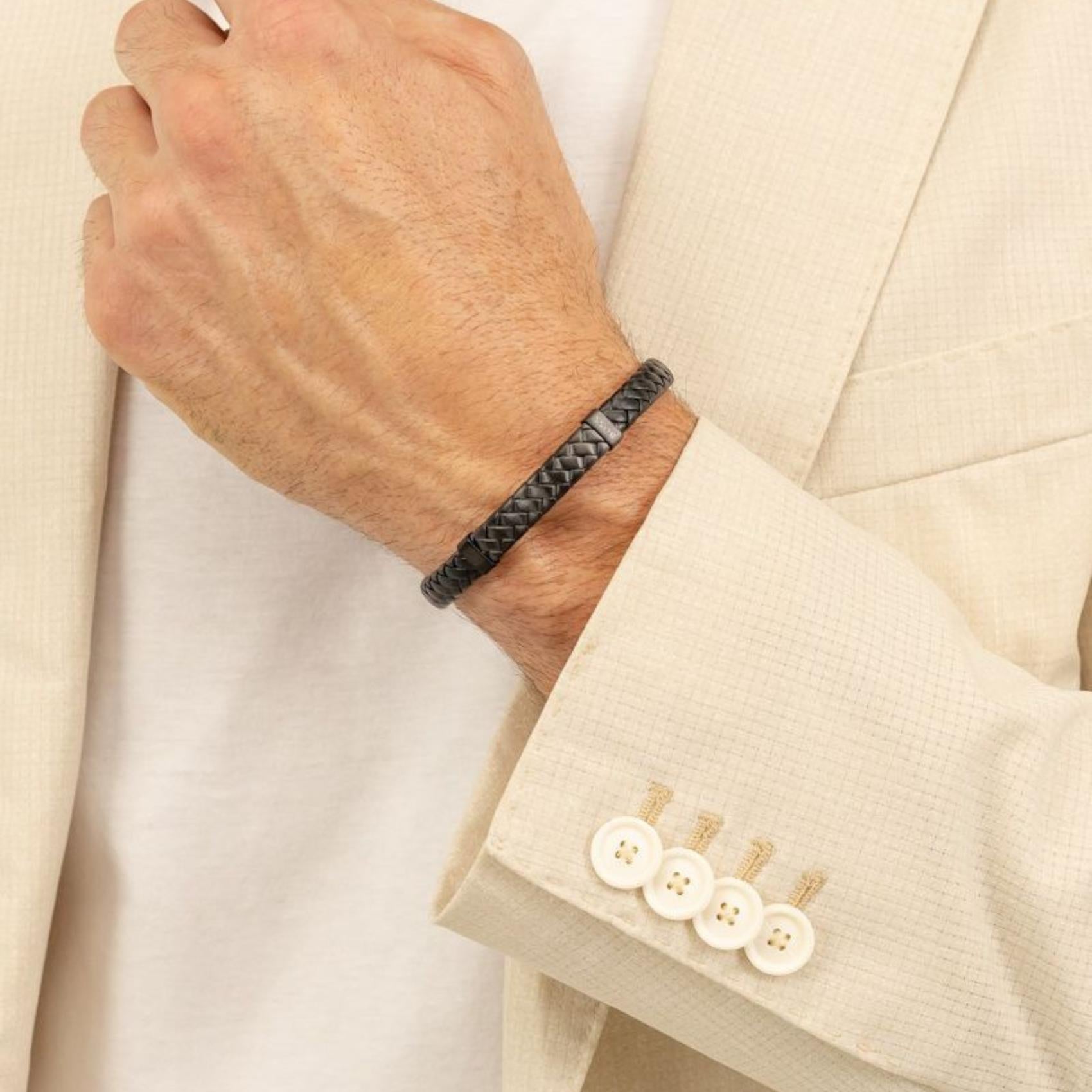 Ανδρικό Μαύρο Δερμάτινο Βραχιόλι Boss 1580676M – Κοσμηματοπωλείο Θεμελίδης