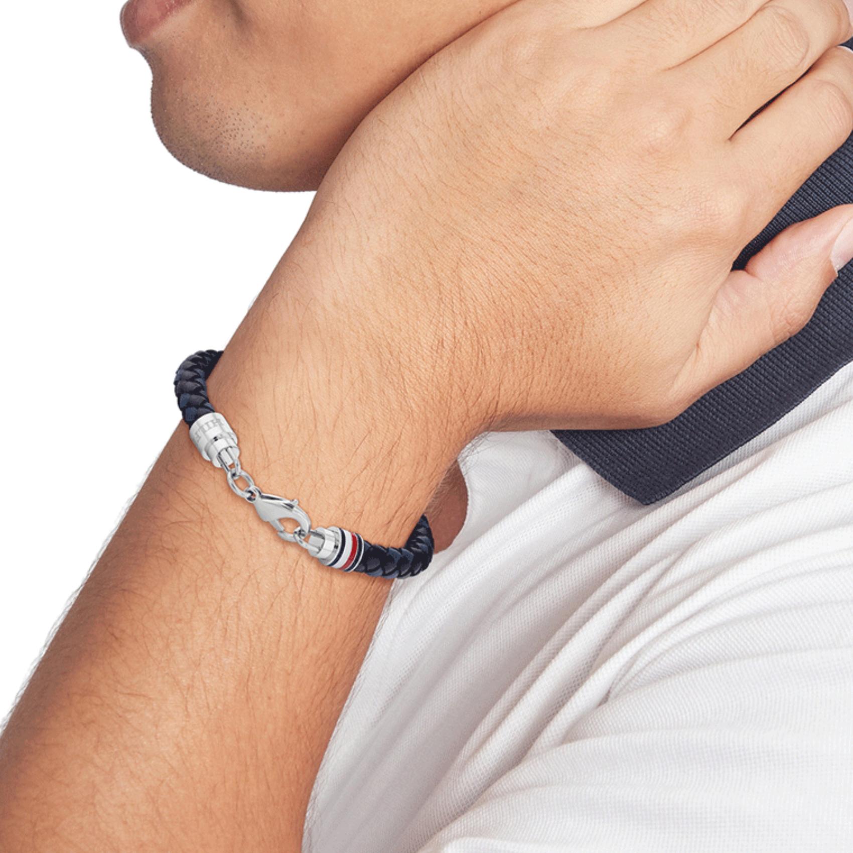 Ανδρικό Βραχιόλι Tommy Hilfiger Δίχρωμο Μπλε Μαύρο Δερμάτινο 2790634