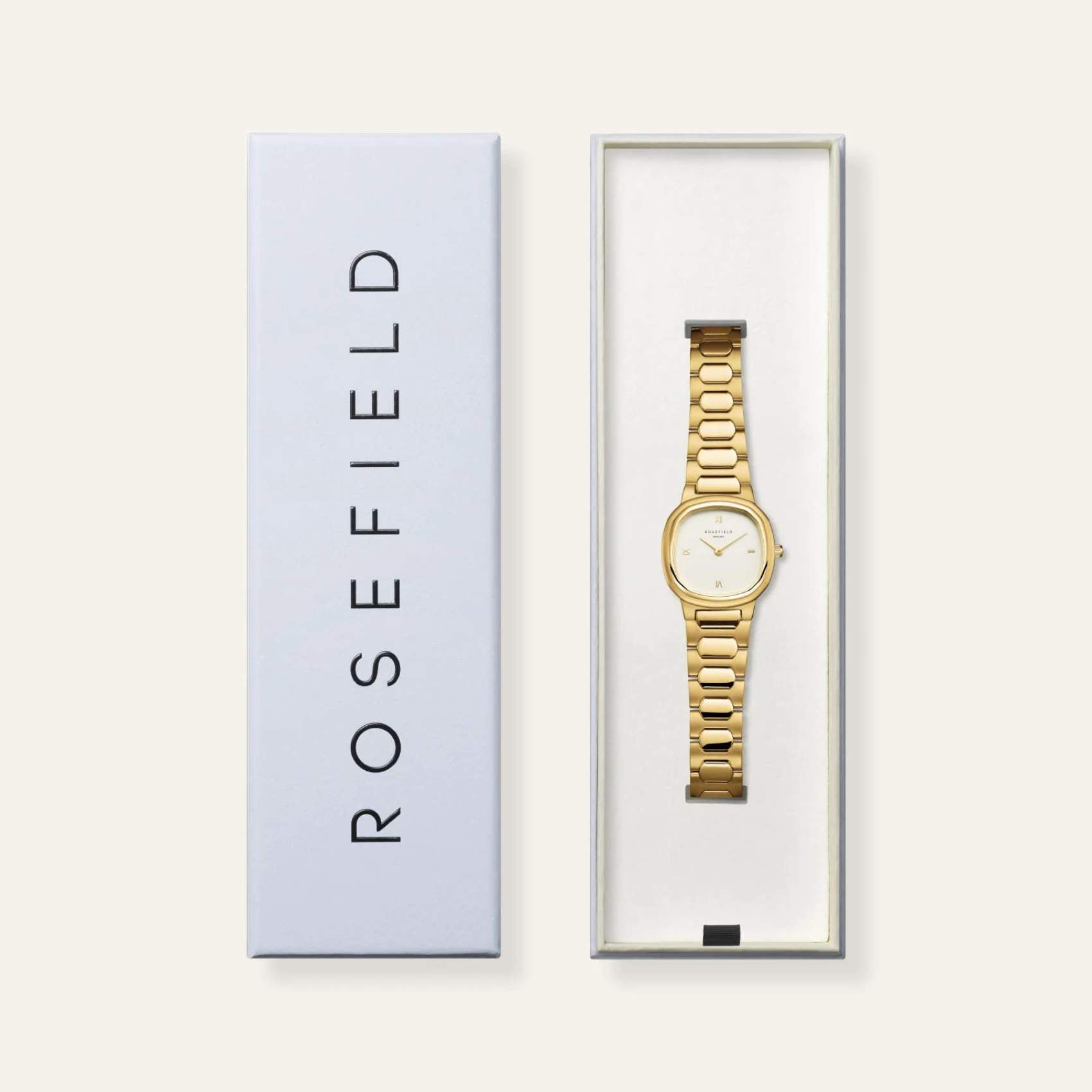 Γυναικείο Ρολόι Rosefield Gaia Creme Gold ORCGSG-OR01 Τετράγωνο Με Χρυσό Μπρασελέ