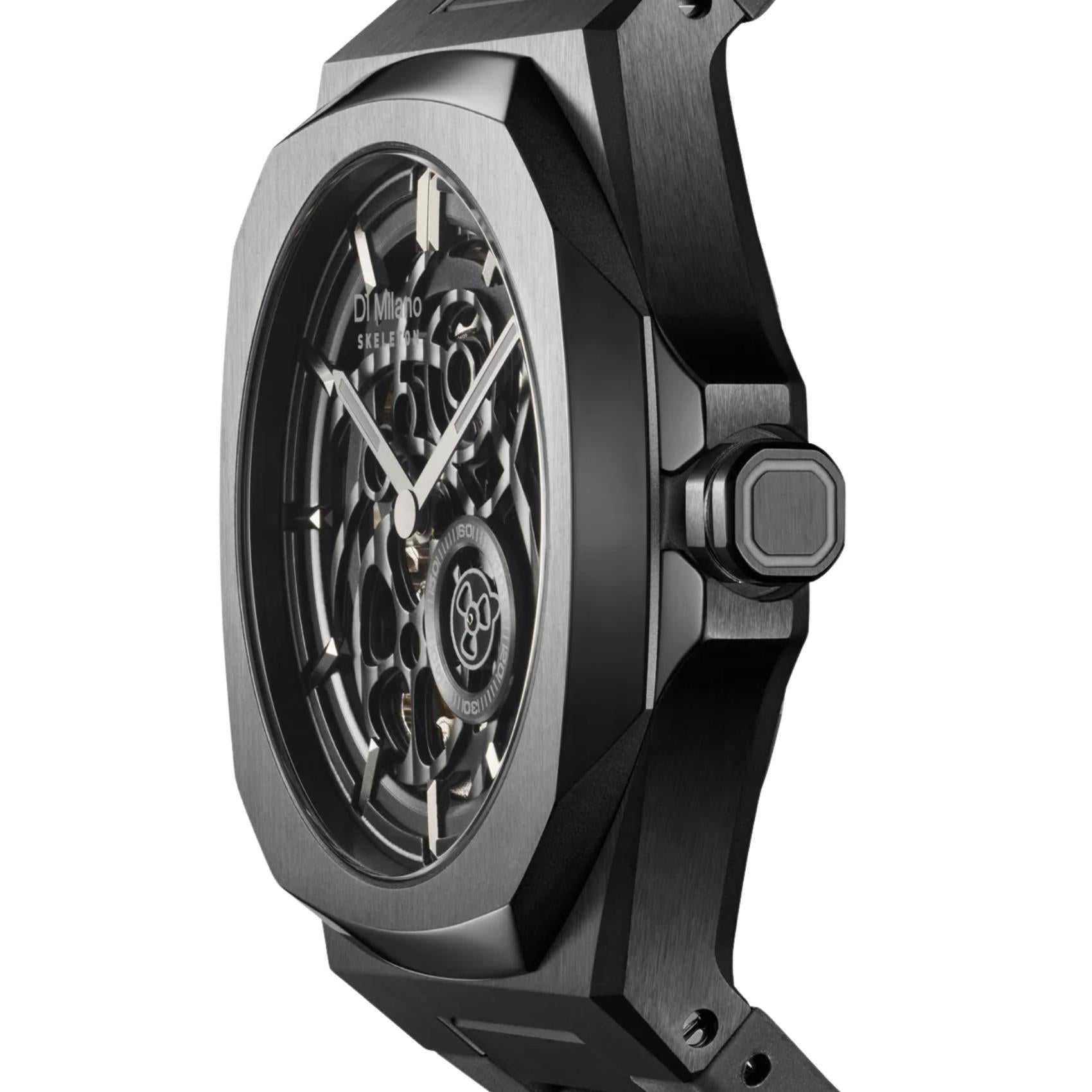 Ανδρικό ρολόι D1 Milano D1-SKRJ17 με μαύρο λουράκι από ανθεκτικό καουτσούκ και skeleton καντράν μαύρου χρώματος με κάσα διαμέτρου 41.5mm. Λειτουργεί με αυτόματο μηχανισμό Miyota 8N40 open back και έχει αχάρακτο κρύσταλλο από ζαφείρι. Είναι αδιάβροχο με στεγανότητα 5ATM-50Μ που το καθιστά κατάλληλο για κολύμβηση.