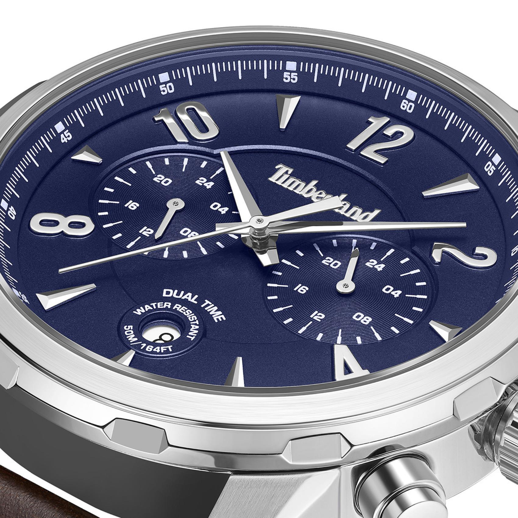 Ρολόι Timberland Newkirk TDWGF0082903 Με Καφέ Δερμάτινο Λουράκι Και Μπλε Καντράν