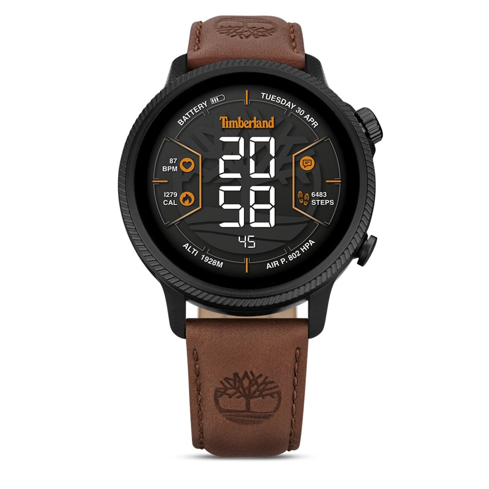 Smartwatch Timberland Trail Force S1 TDIGB00645X0 Set με καφέ δερμάτινο λουράκι και μαύρο καντράν διαμέτρου 48 mm. Διαθέτει λειτουργίες υπαίθριων δραστηριότητων και άσκησης, λειτουργίες υγείας και γενικές λειτουργίες όπως λειτουργία ύπνου, ξυπνητήρι, χρονόμετρο, gps. Έχει μαγνητική φόρτιση, συνδέεται με την εφαρμογή Trailforce, που είναι συμβατή με iOS και Android. Στην συσκευασία περιλαμβάνεται και και δύο extras λουράκια σιλικόνης, μαύρο και πορτοκαλί