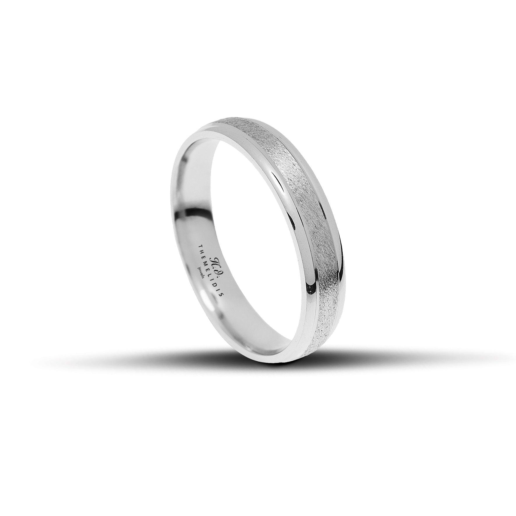 Μοντέρνες Λευκόχρυσες Βέρες Γάμου 4.5 mm Λουστρέ με Σαγρέ Κέντρο WR341
