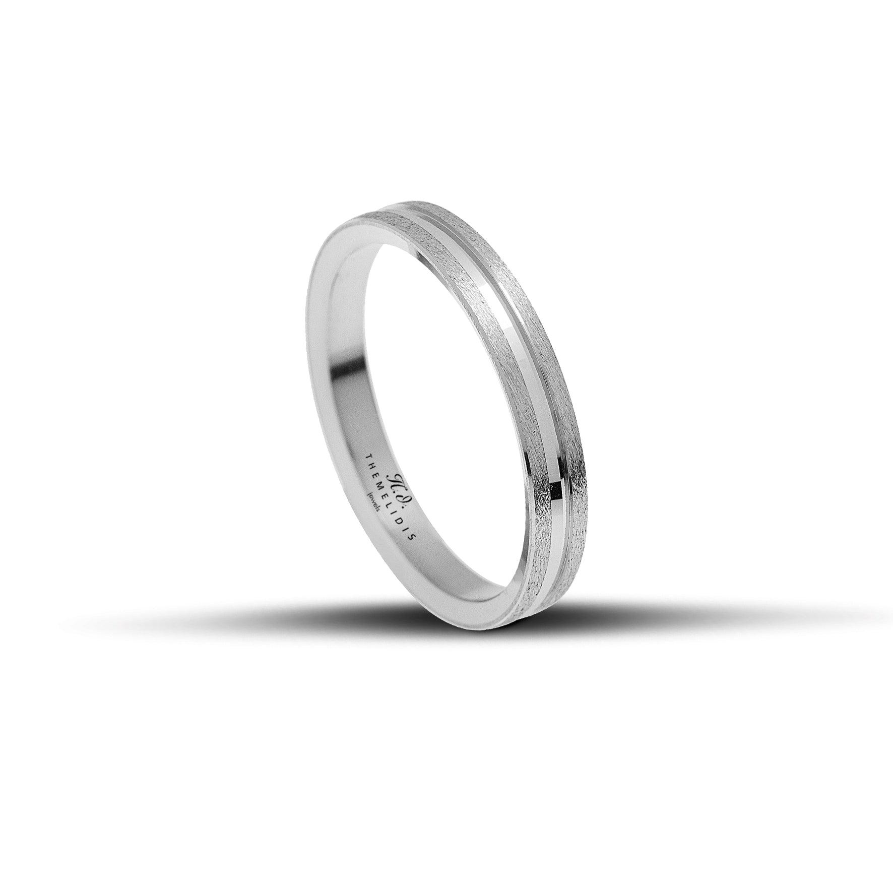 Λευκόχρυσες Βέρες Γάμου 3.5 mm Ματ με Λουστρέ Κέντρο WR332 – Κοσμηματοπωλείο Θεμελίδης