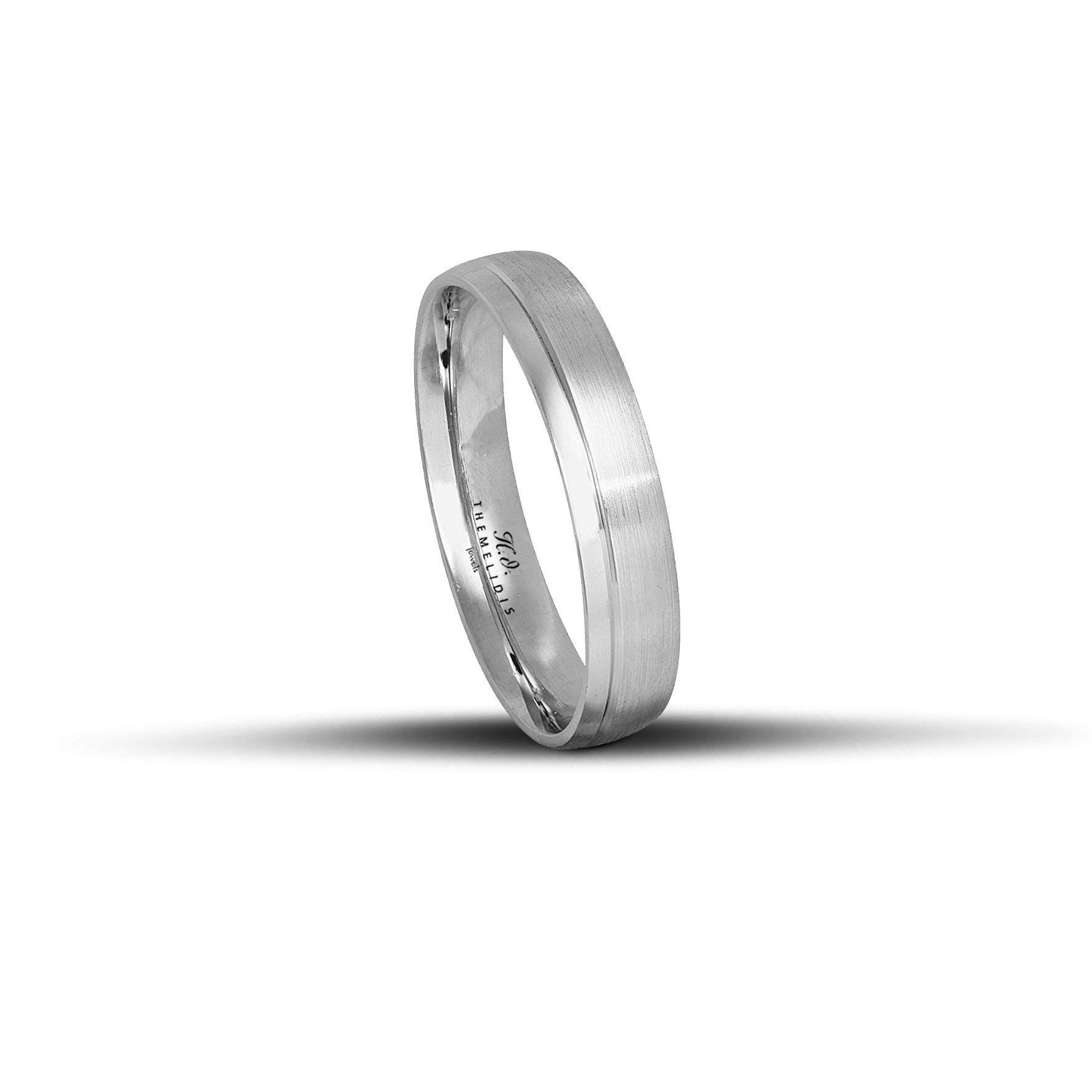 Βέρες Γάμου Λευκόχρυσες 4.5mm Σαγρέ με Λουστρέ Γραμμή WR104