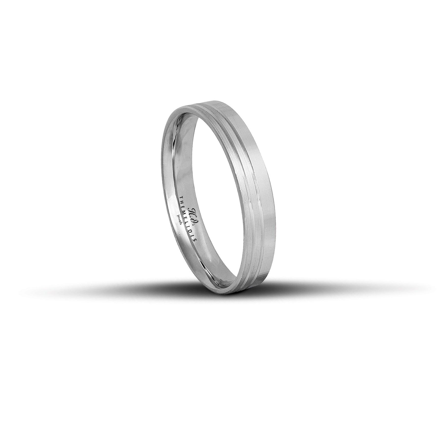 Βέρες Γάμου Λευκόχρυσες 4mm Σαγρέ με Γραμμές WR092