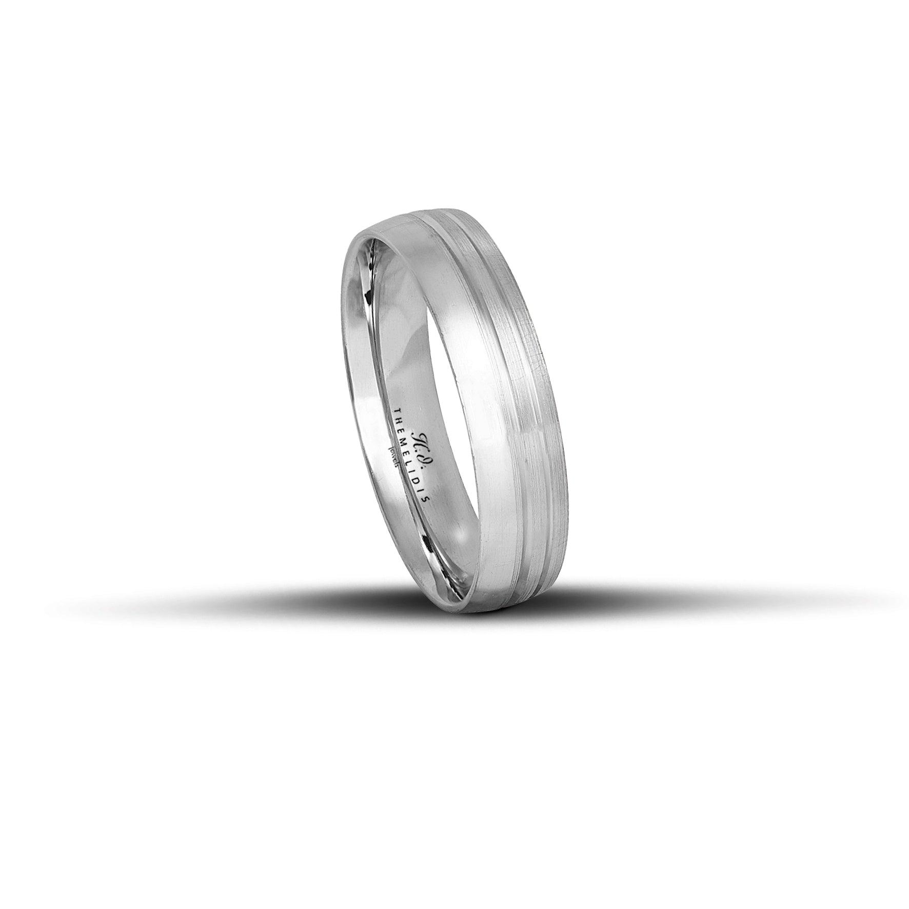 Λευκόχρυσες βέρες γάμου με σαγρέ φινίρισμα και διακριτικές γραμμές αποπνέουν λιτή πολυτέλεια και ισορροπία. Με πλάτος 5mm, το σχέδιο συνδυάζει μοντέρνα γεωμετρία με κλασική αισθητική, δημιουργώντας ένα αποτέλεσμα που ξεχωρίζει χωρίς υπερβολές.
