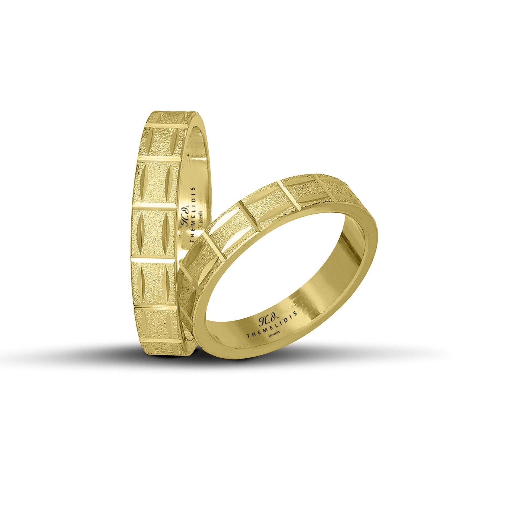 Πρωτότυπες Βέρες Γάμου Χρυσές 4.3 mm Σαγρέ με Λουστρέ Λεπτομέρειες WR173
