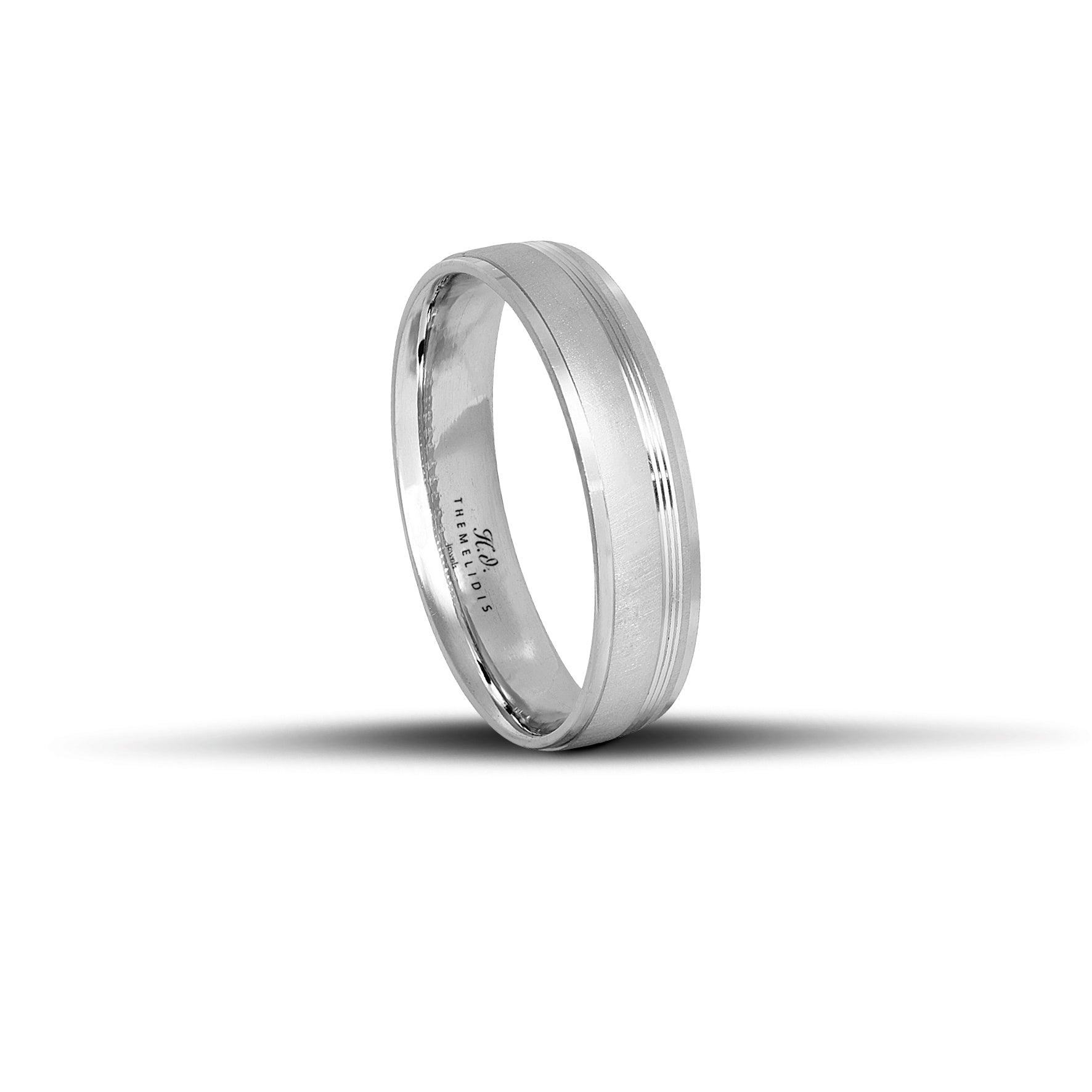 Βέρες Γάμου Λευκόχρυσες 5mm Ματ με Λουστρέ Γραμμές WR114