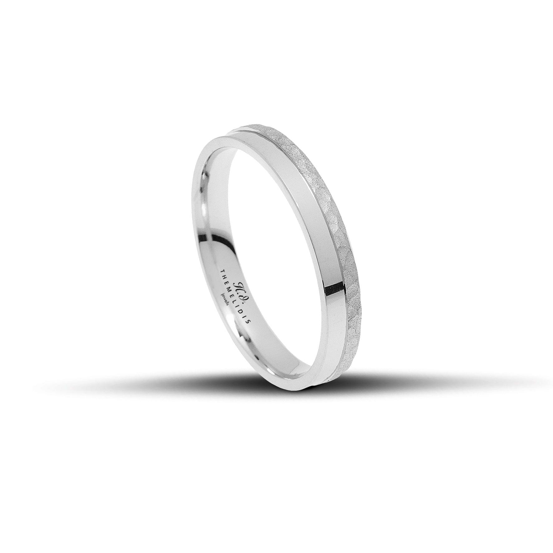 Βέρες Γάμου Λευκόχρυσες με Διαγώνιο Χάραγμα 3.5mm Σφυρήλατες Με Αμμοβολή WR354