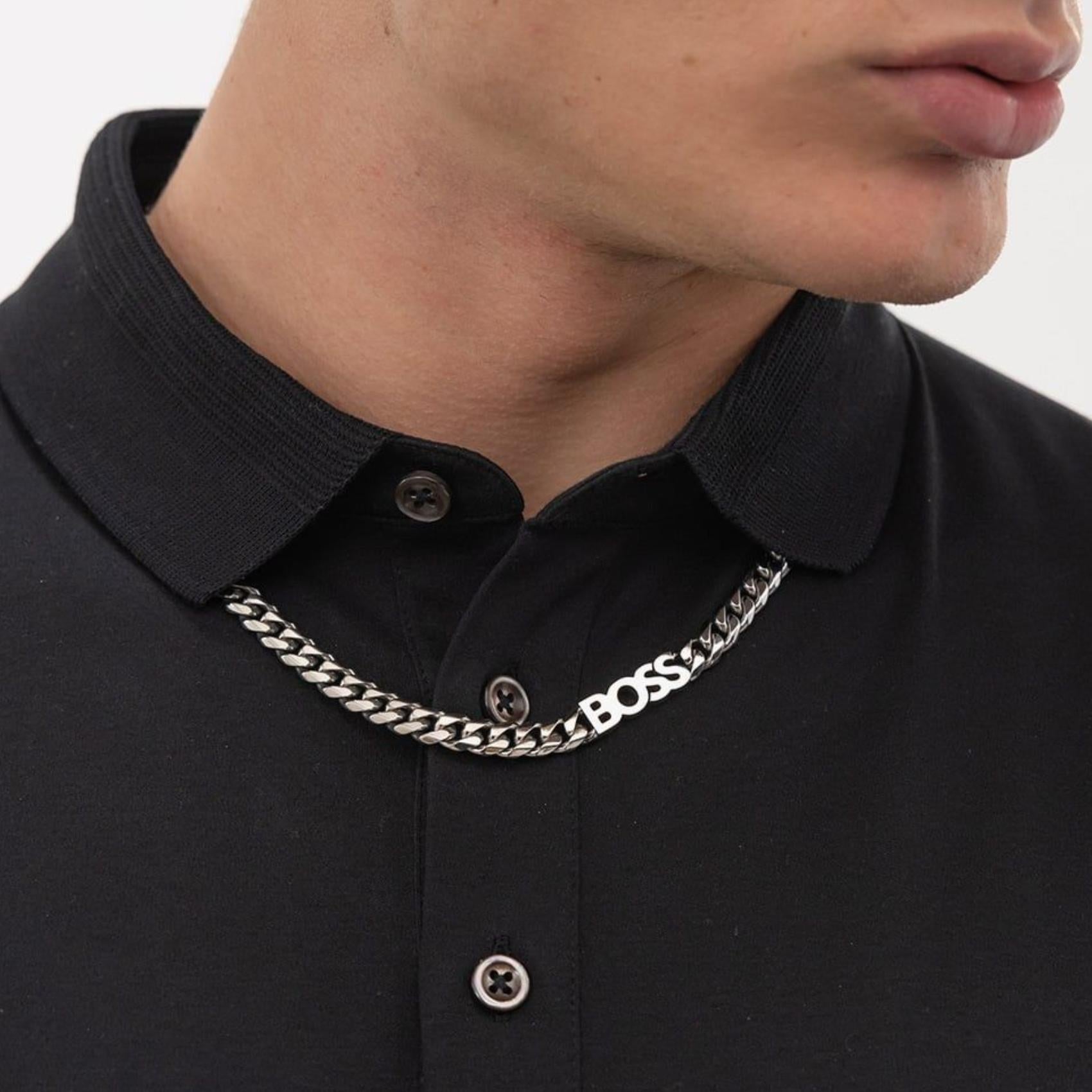Ανδρικό κολιέ αλυσίδα Boss 1580769 κατασκευασμένο από ανοξείδωτο ατσάλι σε ασημί χρώμα. Συνδυάζει μια επιβλητική αλυσίδα τύπου curb πάχους 8mm και μήκους 50cm που ισορροπεί τέλεια ανάμεσα στη διαχρονική αντοχή και το απαράμιλλο στυλ και το iconic λογότυπο. Αποστέλλεται σε συσκευασία δώρου, με πιστοποιητικό γνησιότητας από την επίσημη αντιπροσωπεία της Boss.