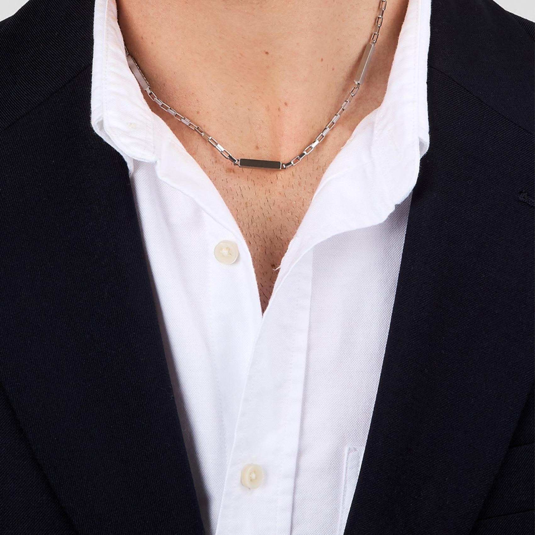 Ανδρικό κολιέ Maserati JM425AVD110 από ανοξείδωτο ατσάλι σε ασημί χρώμα. Το κολιέ έχει αλυσίδα με δυνατότητα προσαρμογής μήκους στα 45-50cm και αποστέλλεται σε συσκευασία δώρου, με πιστοποιητικό γνησιότητας από την επίσημη αντιπροσωπεία της Maserati.