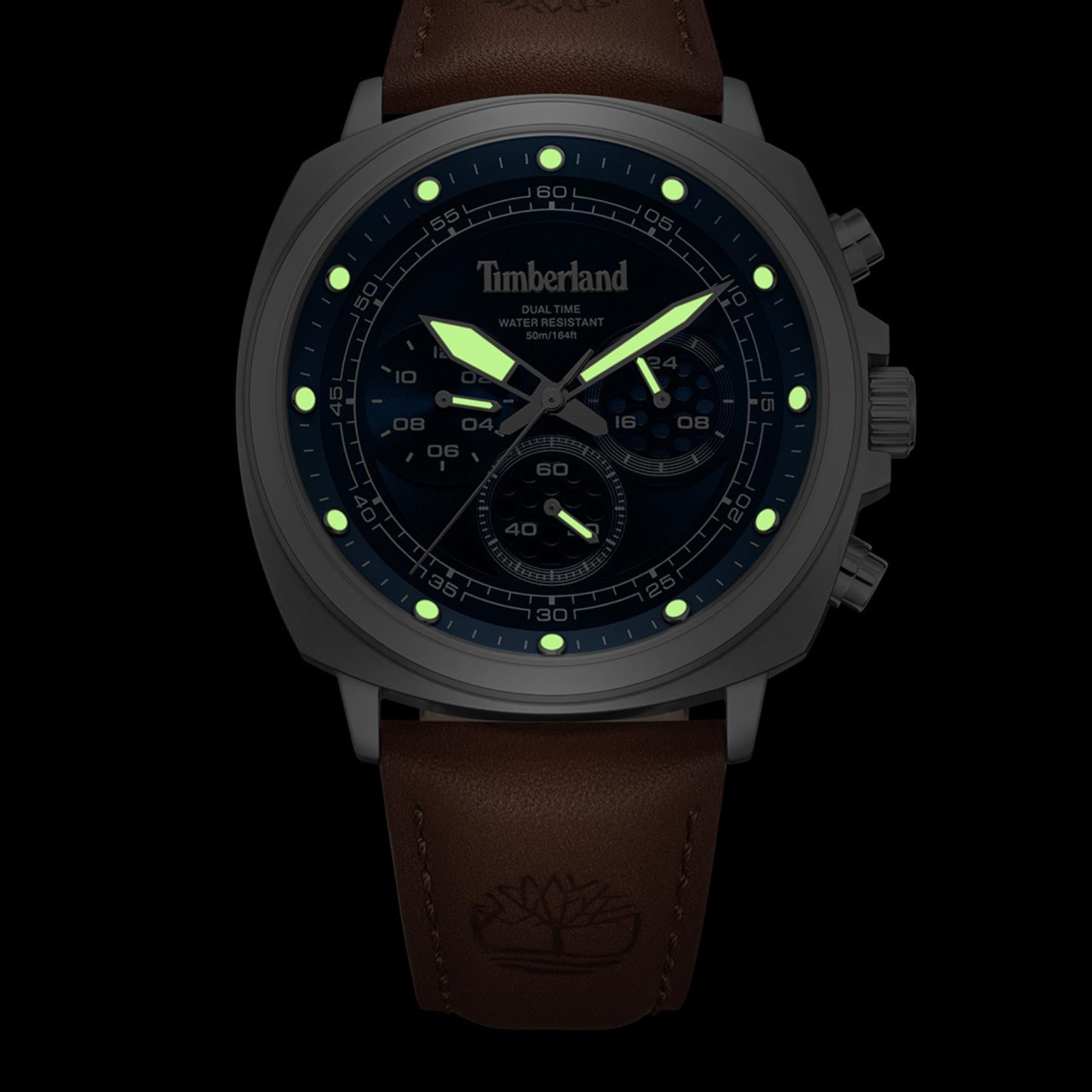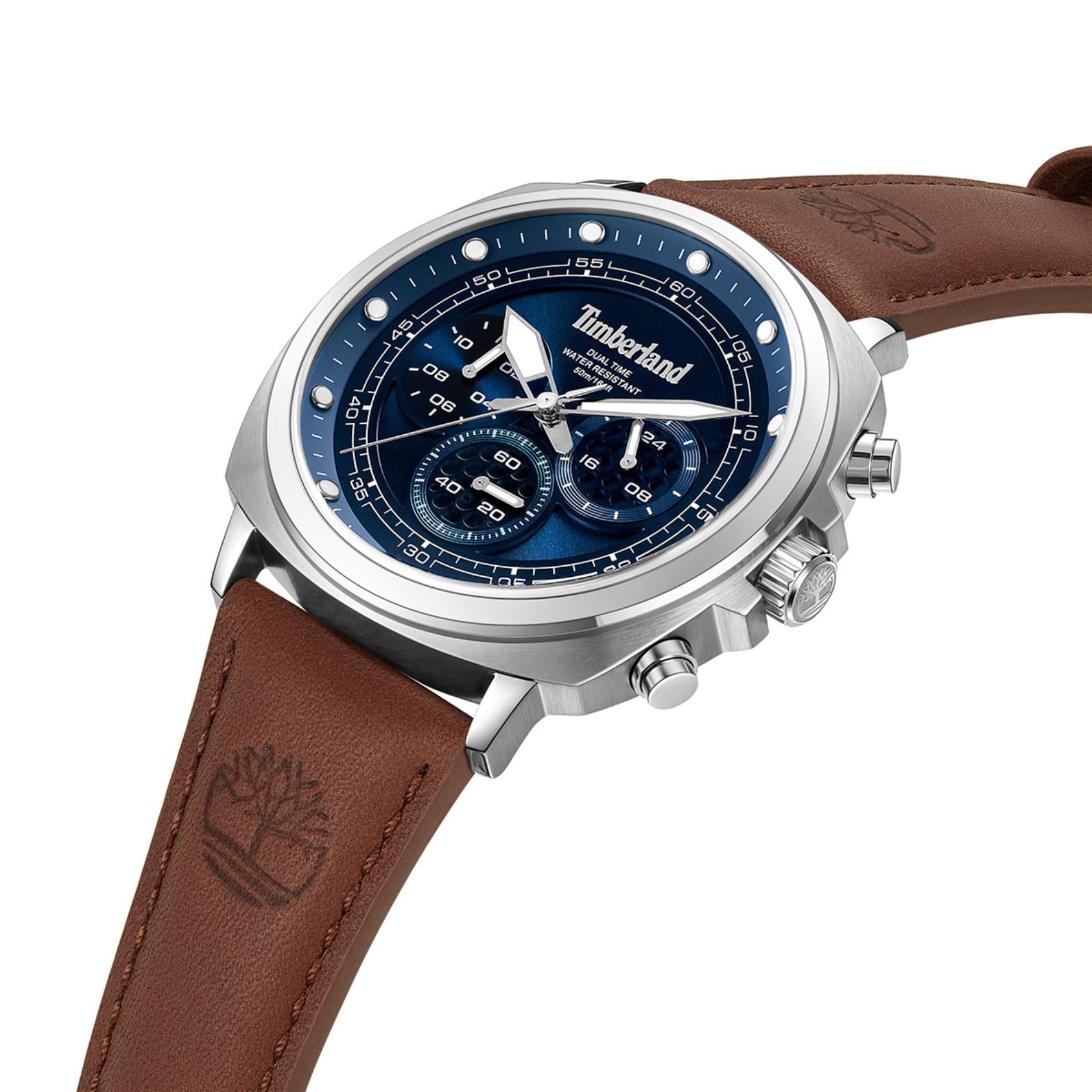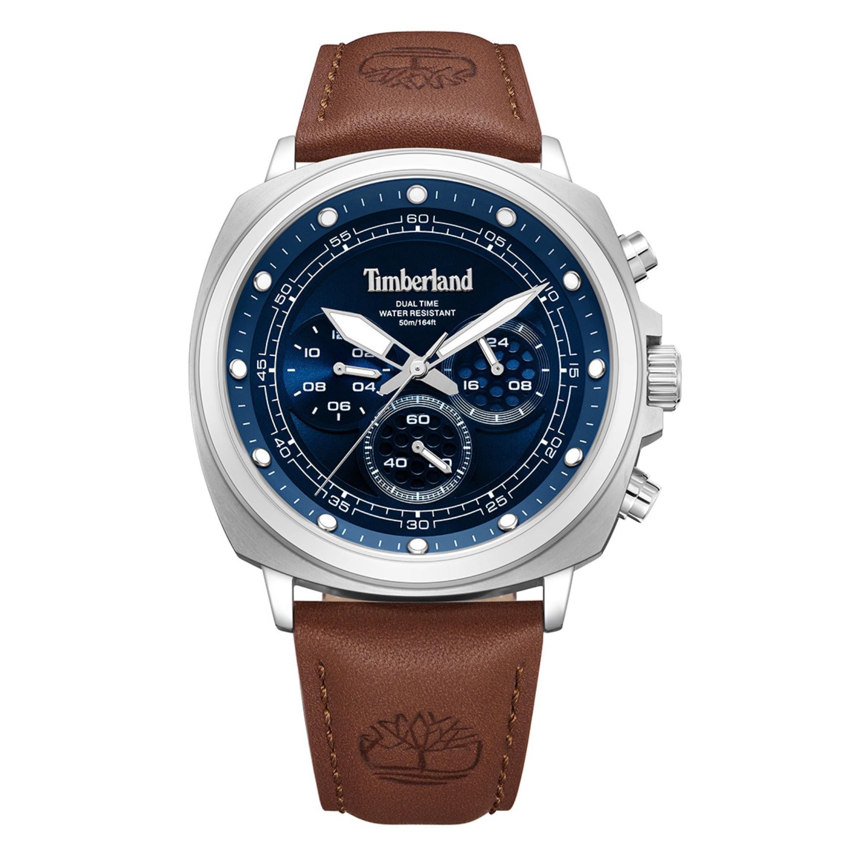 Ρολόι Dual Time Timberland Williston Small TDWGF0042001 Με Καφέ Δερμάτινο Λουράκι Και Μπλε Καντράν
