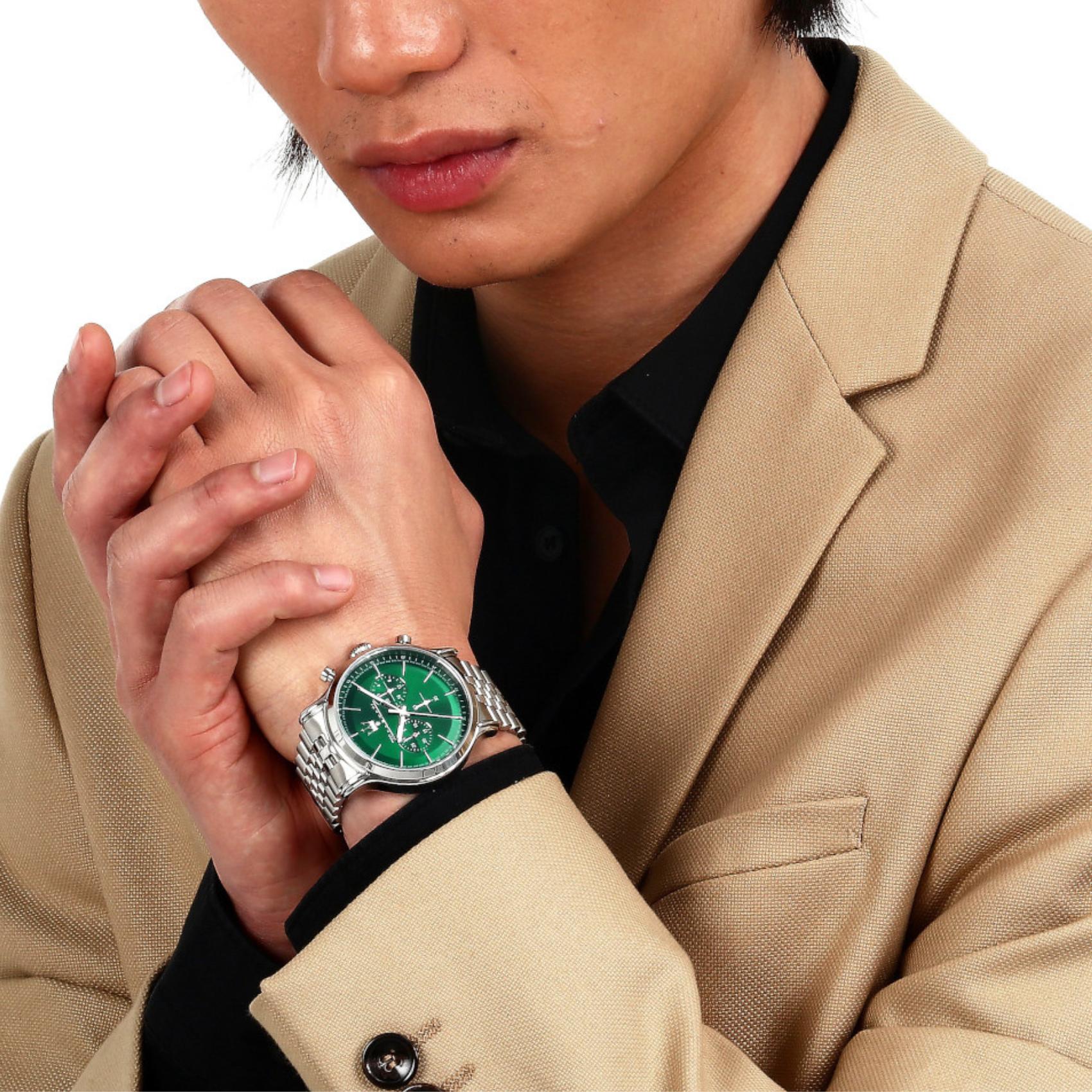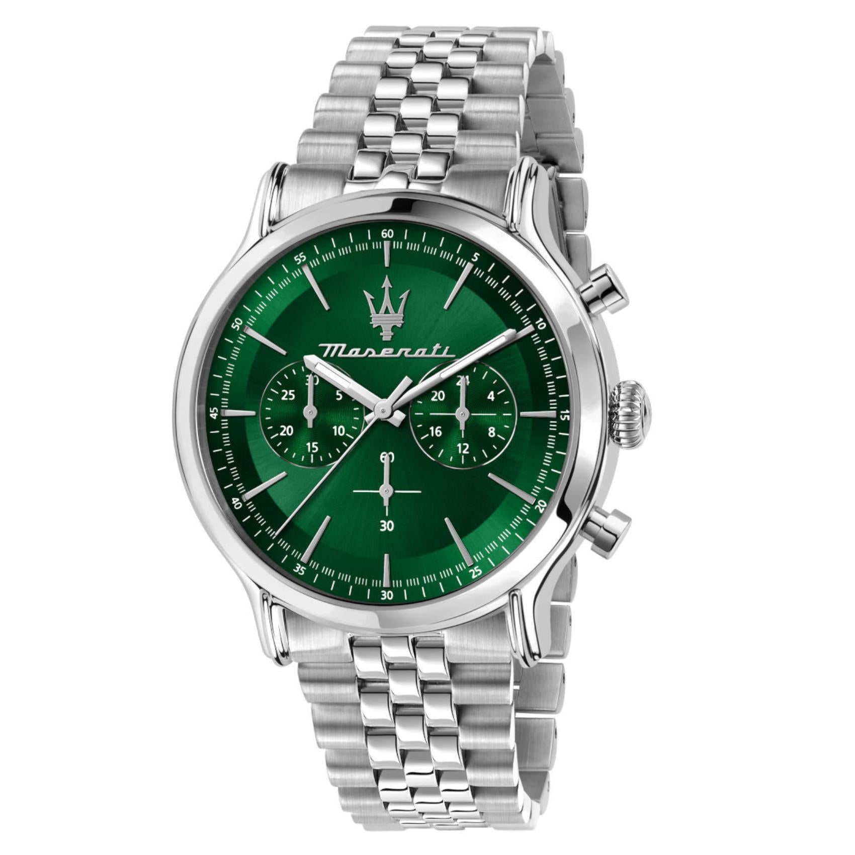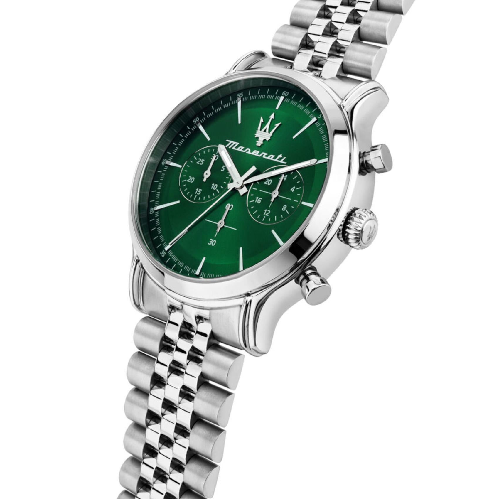 Ρολόι Maserati Epoca Χρονογράφος Με Ασημί Μπρασελέ Και Πράσινο Καντράν R8873618033