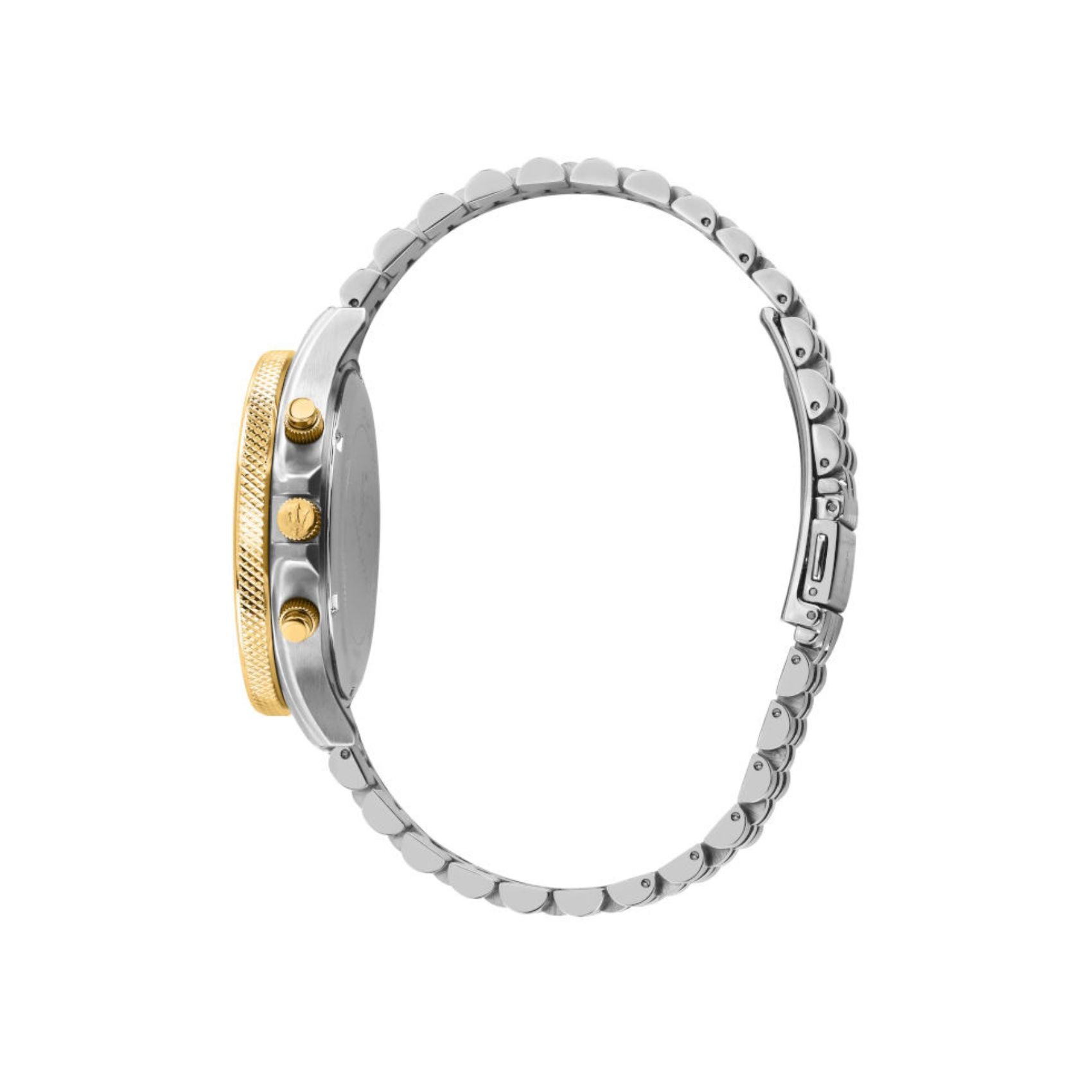 Ανδρικό ρολόι Maserati Sfida R8873640024 χρονογράφος που συνδυάζει δίχρωμο μπρασελέ από ανοξείδωτο ατσάλι σε ασημί και χρυσό και ασημί καντράν, επίχρυσους δείκτες και κάσα διαμέτρου 44mm με χρυσές και μαύρες λεπτομέρειες. Έχει ένδειξη ημερομηνίας, τζάμάκι από ορυκτό κρύσταλλο ειδικής σκλήρυνσης και λειτουργεί με μηχανισμό μπαταρίας Quartz ακριβείας. Το ρολόι είναι αδιάβροχο με στεγανότητα στα 100M/10ΑΤΜ που το καθιστά κατάλληλο για κολύμβηση.