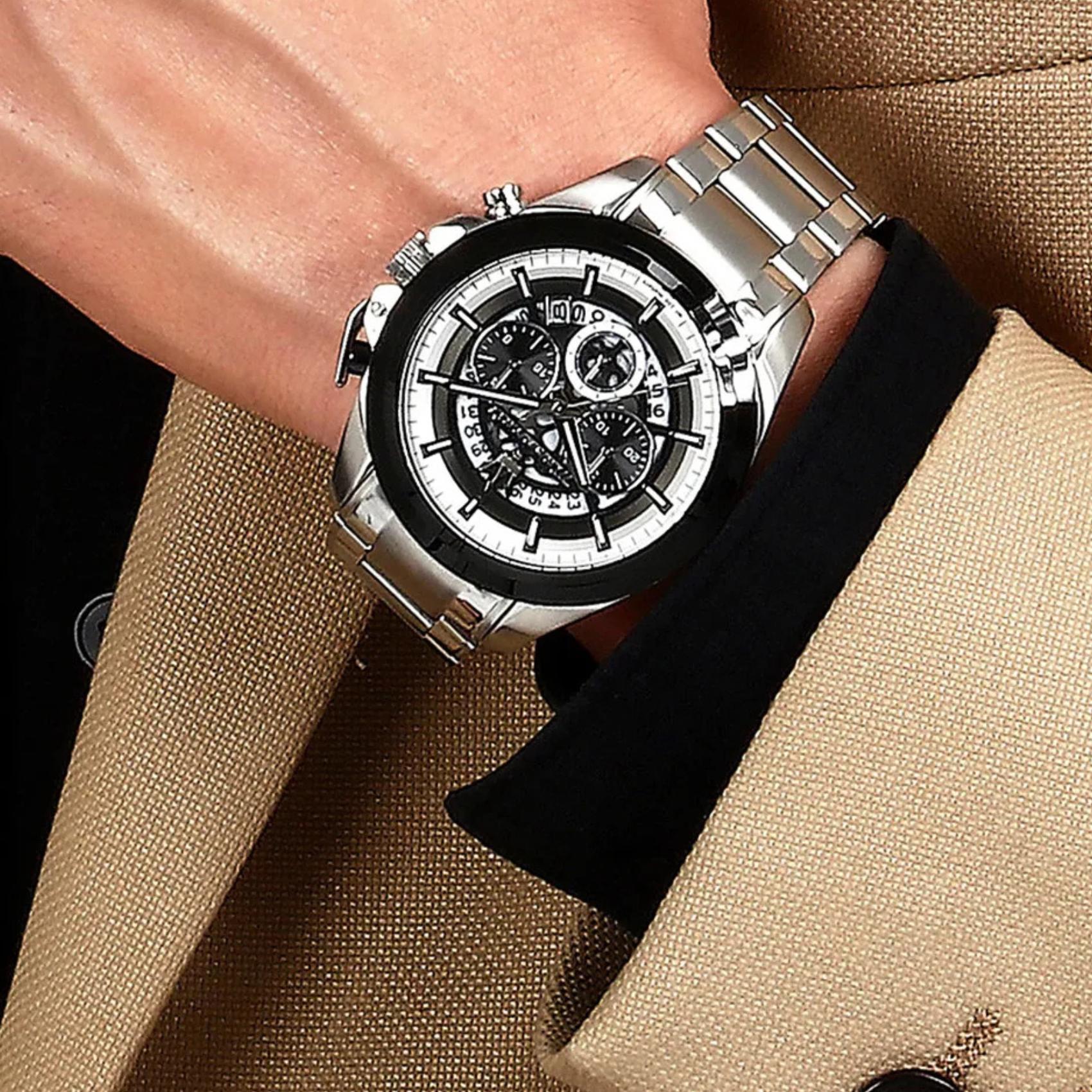 Ανδρικό ρολόι Maserati Traguardo R8873612059 χρονογράφος που συνδυάζει ασημί μπρασελέ από ανοξείδωτο ατσάλι, ασημένιο και μαύρο καντράν, ασημένιους δείκτες και κάσα διαμέτρου 45mm. Έχει ένδειξη ημερομηνίας, τζάμάκι από ορυκτό κρύσταλλο ειδικής σκλήρυνσης και λειτουργεί με μηχανισμό μπαταρίας Quartz ακριβείας. Το ρολόι είναι αδιάβροχο με στεγανότητα στα 100M/10ΑΤΜ που το καθιστά κατάλληλο για κολύμβηση.