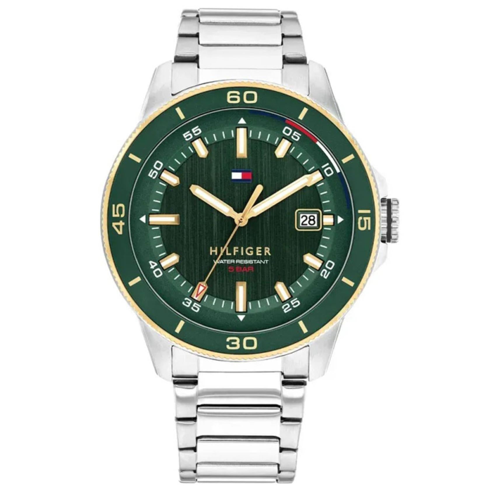 Ρολόι Tommy Hilfiger Remy 1792230 Με Ασημί Μπρασελέ & Πράσινο Καντράν