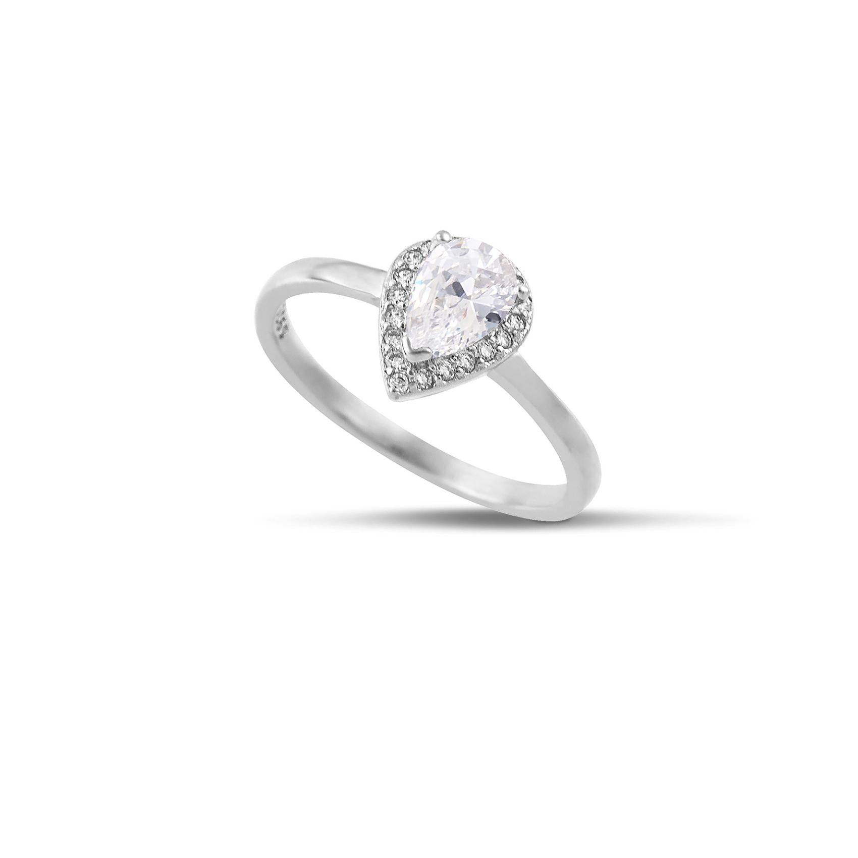 Ασημένιο Δαχτυλίδι SRG004 Ροζέτα Δάκρυ με Λευκή Πέτρα