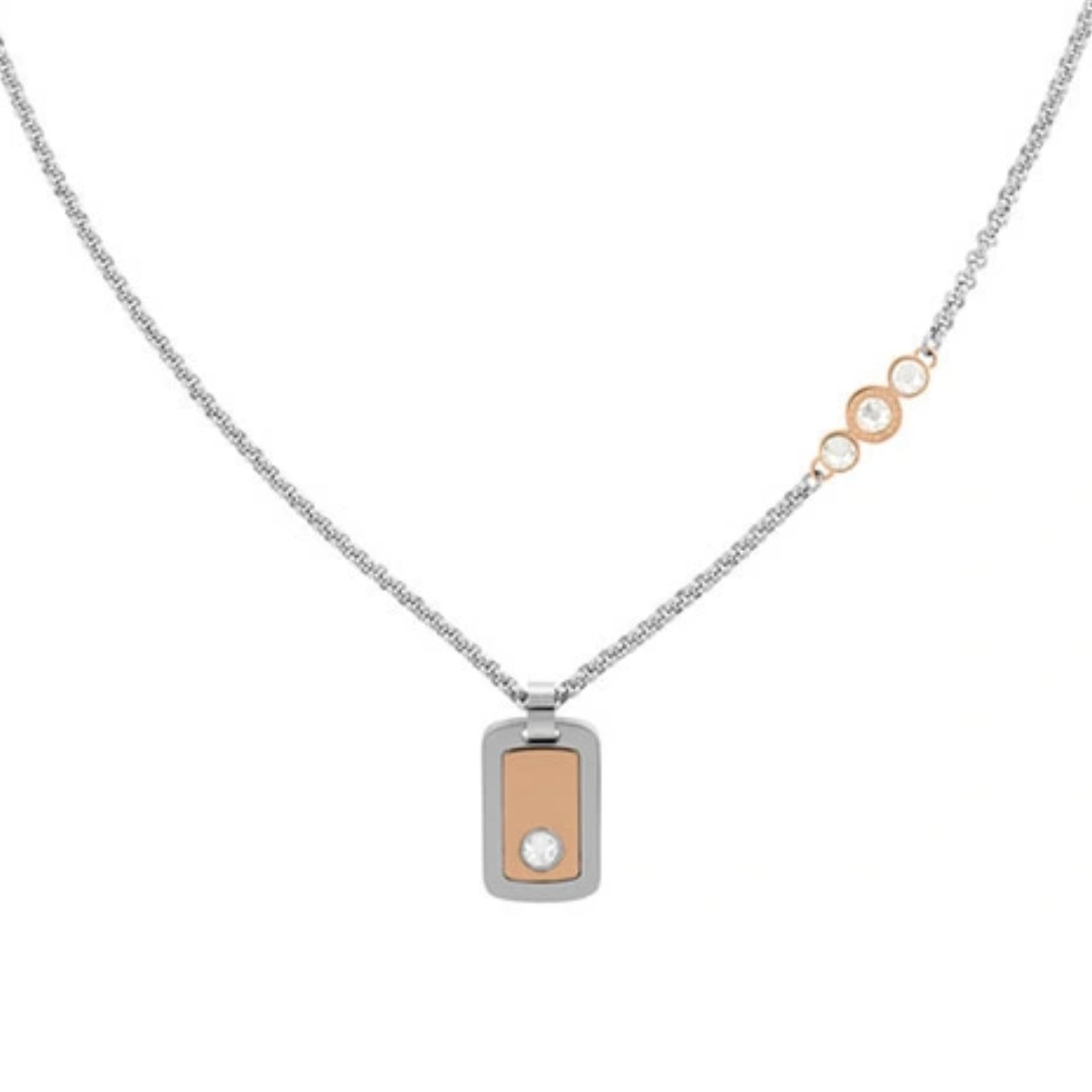 Γυναικείο Κολιέ Tommy Hilfiger Ασημί Με Ροζ Χρυσό Κρεμαστό Και Ζιργκόν 2780577