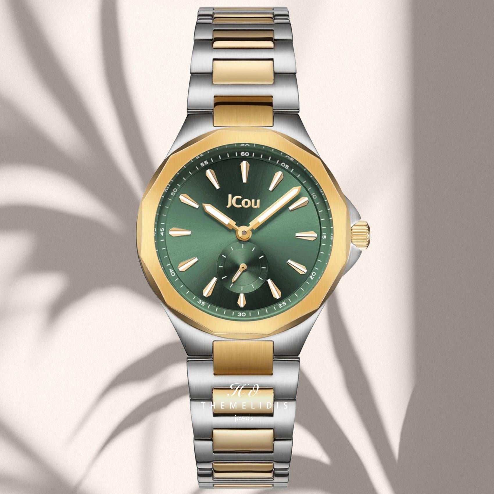 Ρολόι JCOU Aurelia JU19078-2 Με Ασημί Χρυσό Μπρασελέ & Πράσινο Καντράν