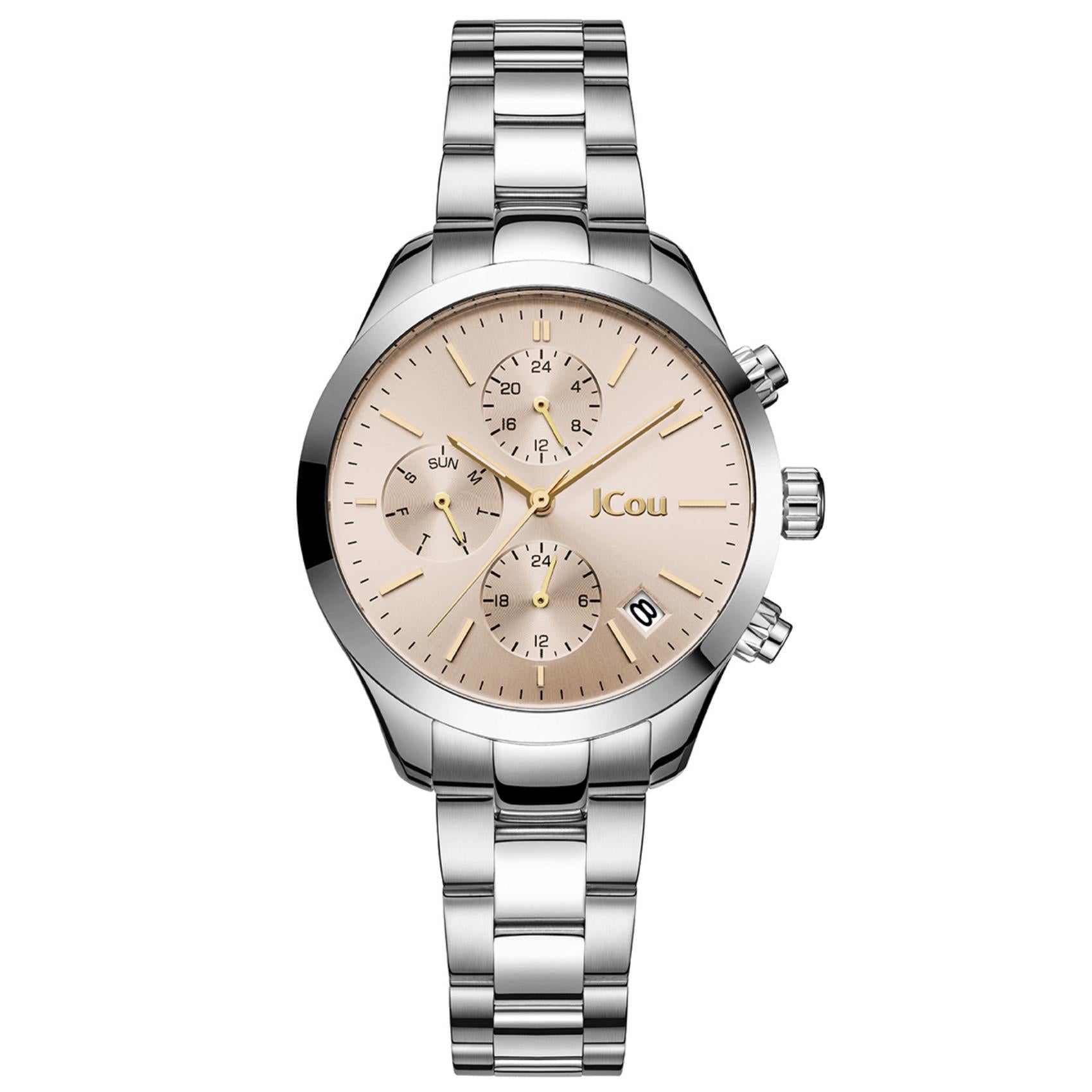 Ρολόι JCOU Aurora JU19081-5 Χρονογράφος Με Ασημί Μπρασελέ & Μπεζ Καντράν