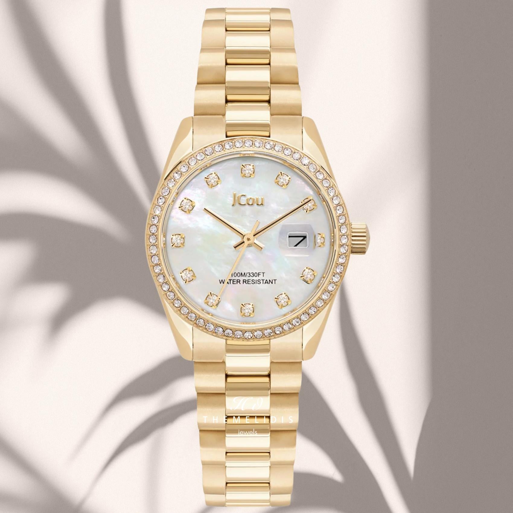 Ρολόι JCOU Iris JU19082-4 Με Χρυσό Μπρασελέ & Φίλντισι Καντράν