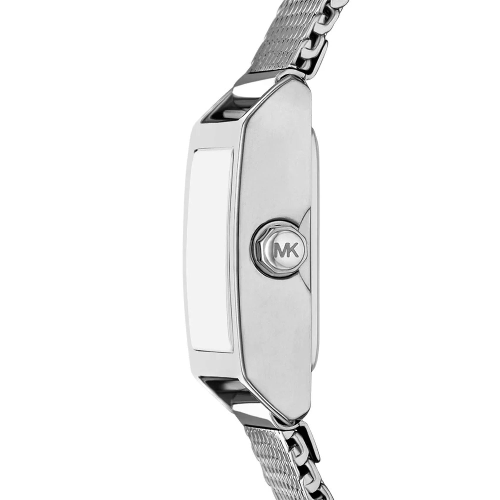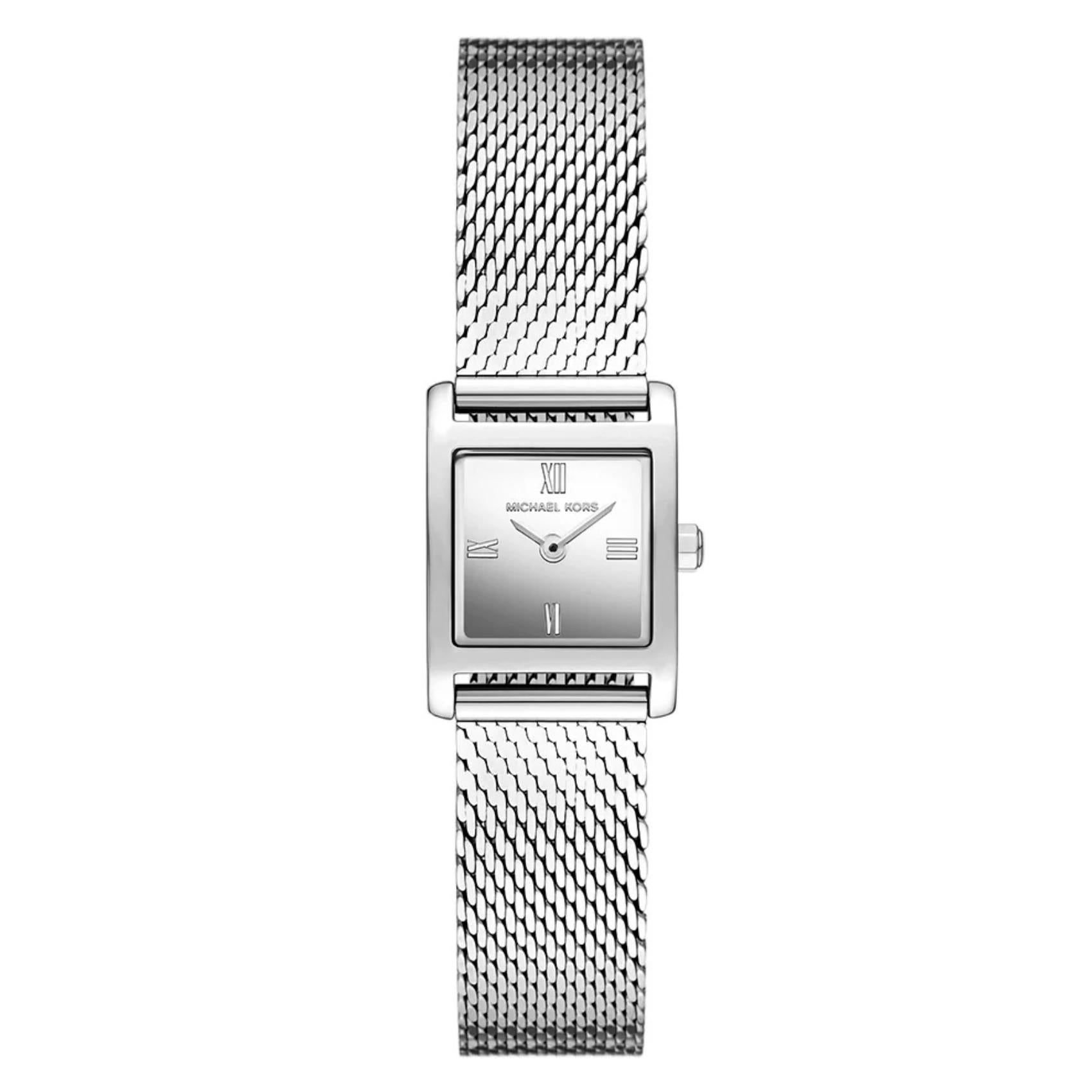 Γυναικείο ρολόι Michael Κors Georgie MK4961 με ασημί ατσάλινο μπρασελέ και ασημί τετράγωνο καντράν μεγέθους 19mm. Λειτουργεί με μηχανισμό μπαταρίας quartz ενώ είναι αδιάβροχο με στεγανότητα 5ATM-50Μ που το καθιστά κατάλληλο για κολύμβηση.