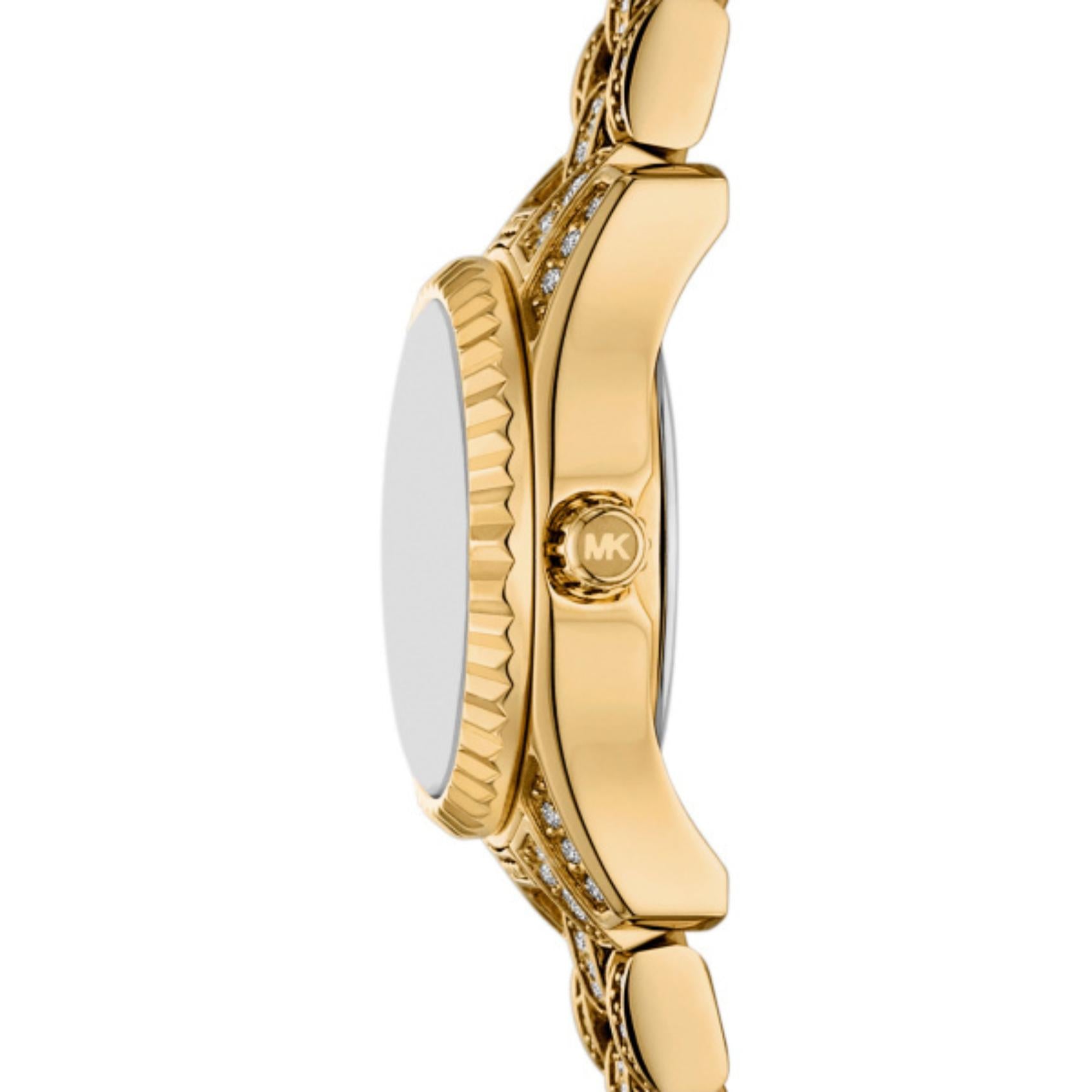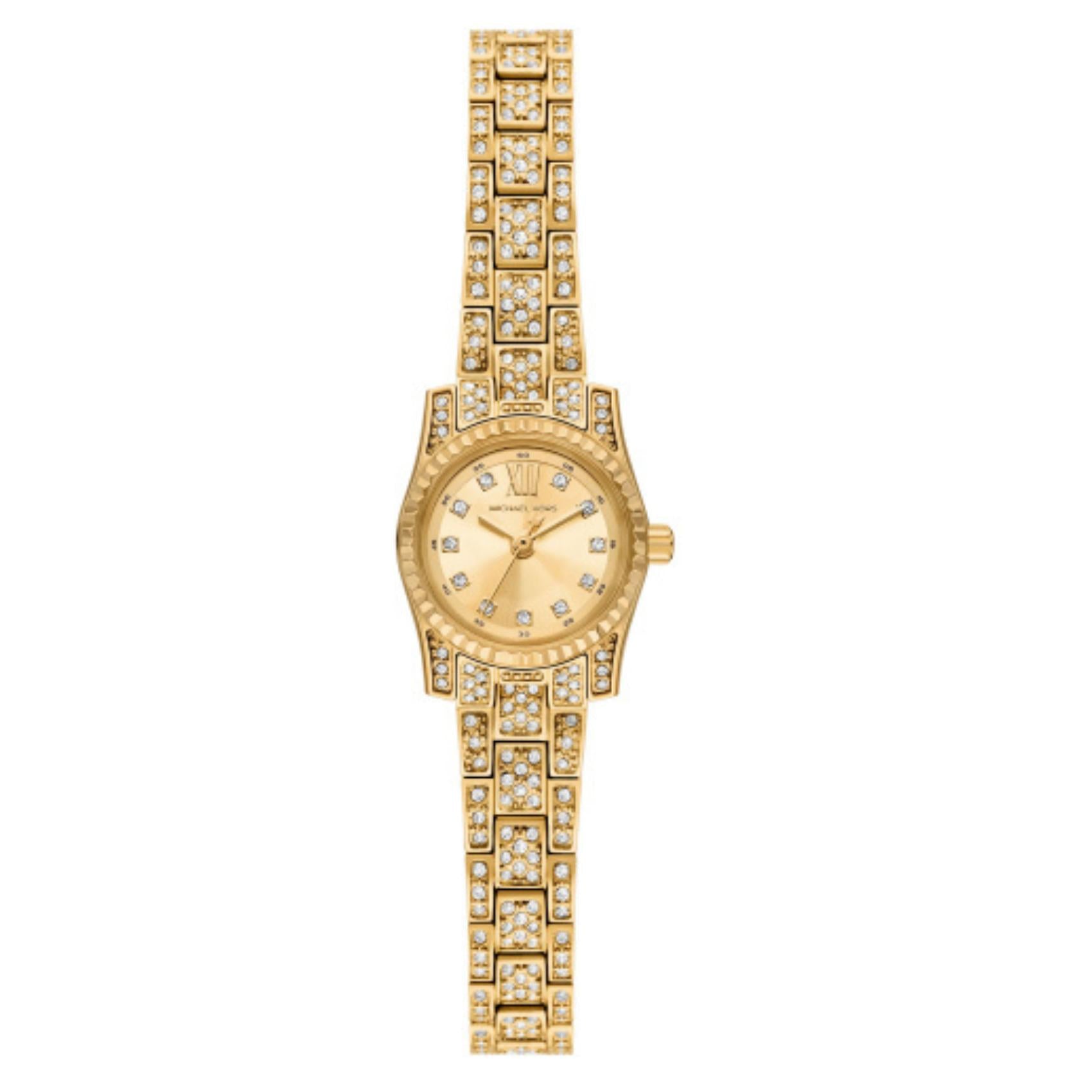 Γυναικείο ρολόι Michael Kors Lexington MK4980 με χρυσό μπρασελέ από ανοξείδωτο ατσάλι και χρυσό καντράν 19mm διακοσμημένο με διακριτικά ζιργκόν. Λειτουργεί με μηχανισμό μπαταρίας quartz ενώ είναι αδιάβροχο με στεγανότητα 5ATM-50Μ που το καθιστά κατάλληλο για κολύμβηση.