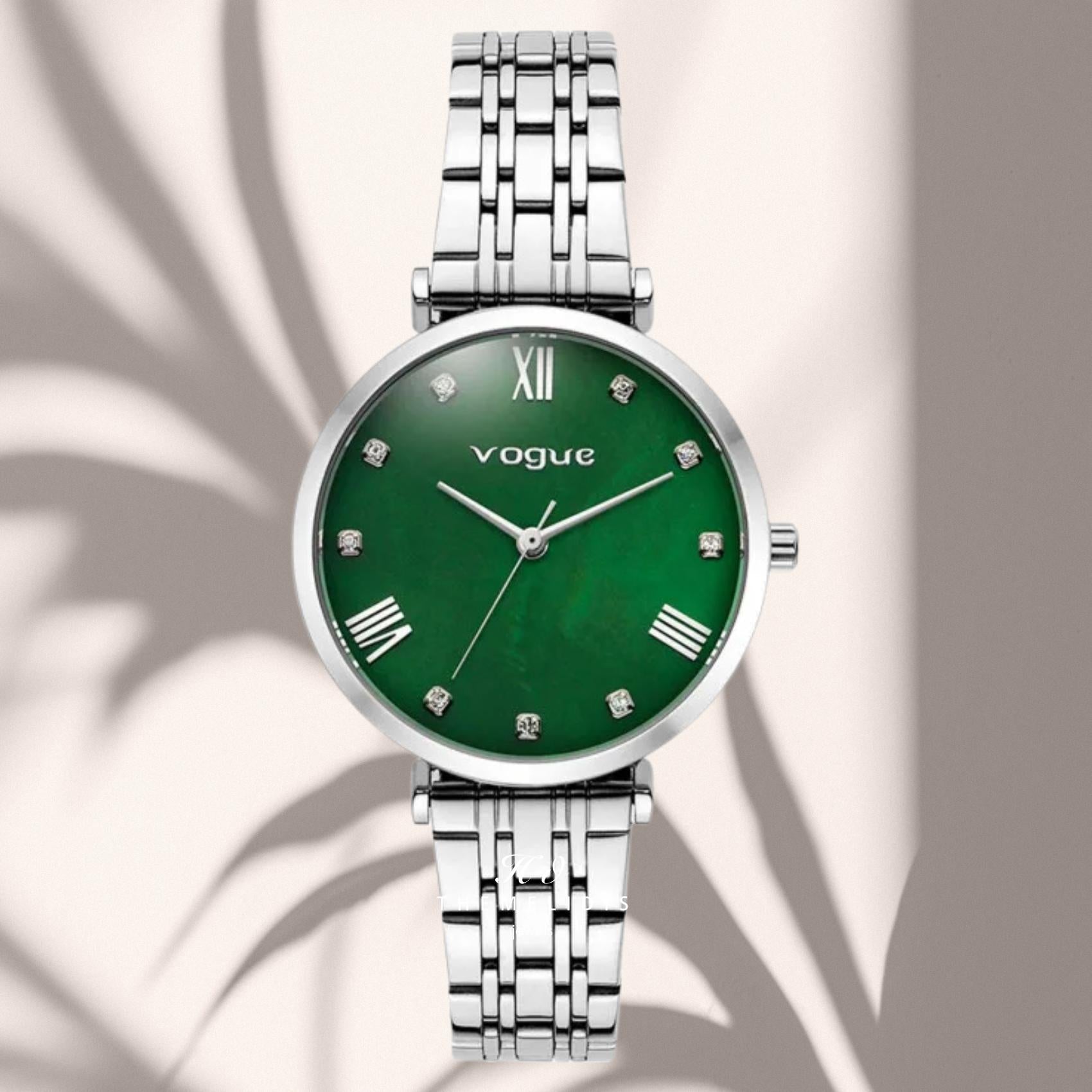 Ρολόι Vogue New Bliss 2020616385 Με Ασημί Μπρασελέ και Πράσινο Φίλντισι Καντράν