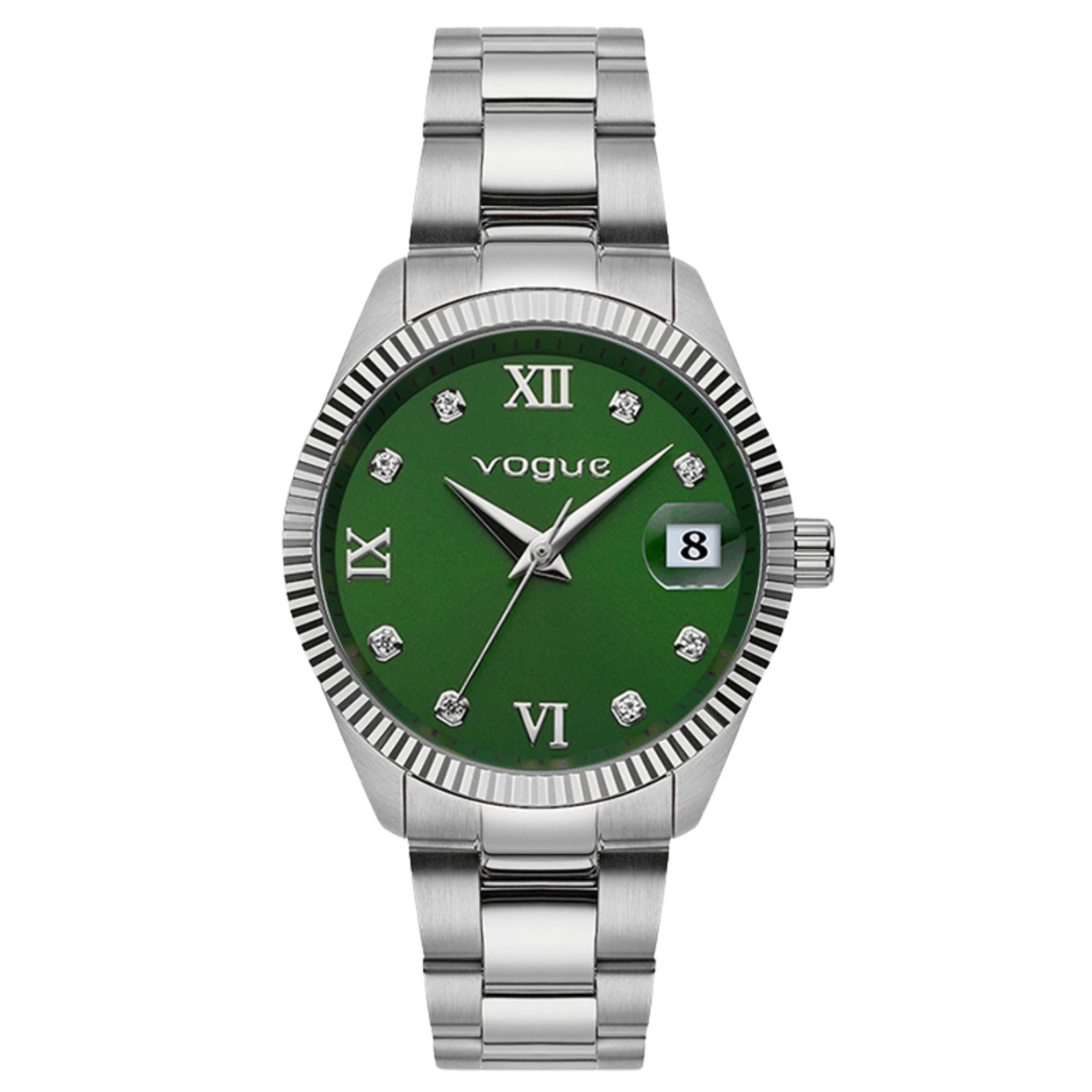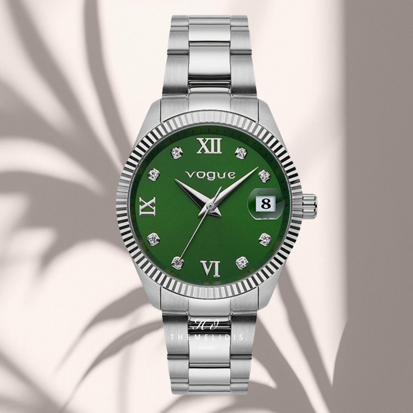 Ρολόι Vogue Reina 2020614183 Με Ασημί Μπρασελέ Και Πράσινο Καντράν