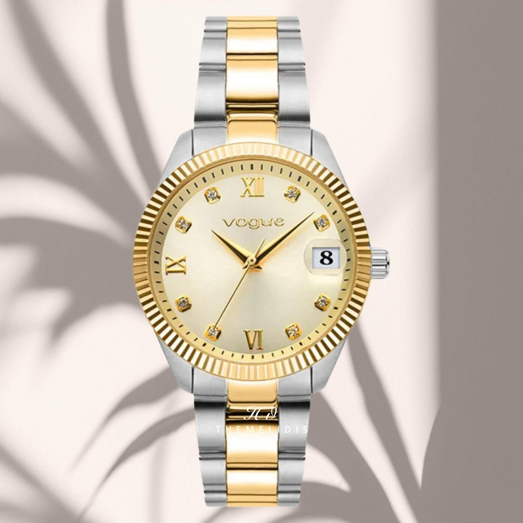 Ρολόι Vogue Reina Medium 2020614262 Με Δίχρωμο Μπρασελέ και Χρυσό Καντράν