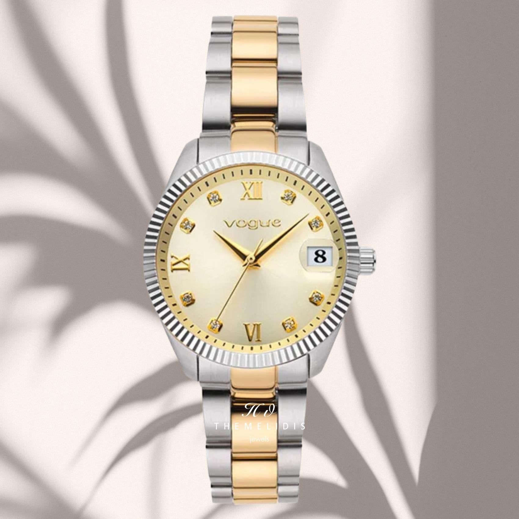 Ρολόι Vogue Reina Mini 2020614342 Με Δίχρωμο Μπρασελέ και Χρυσό Καντράν