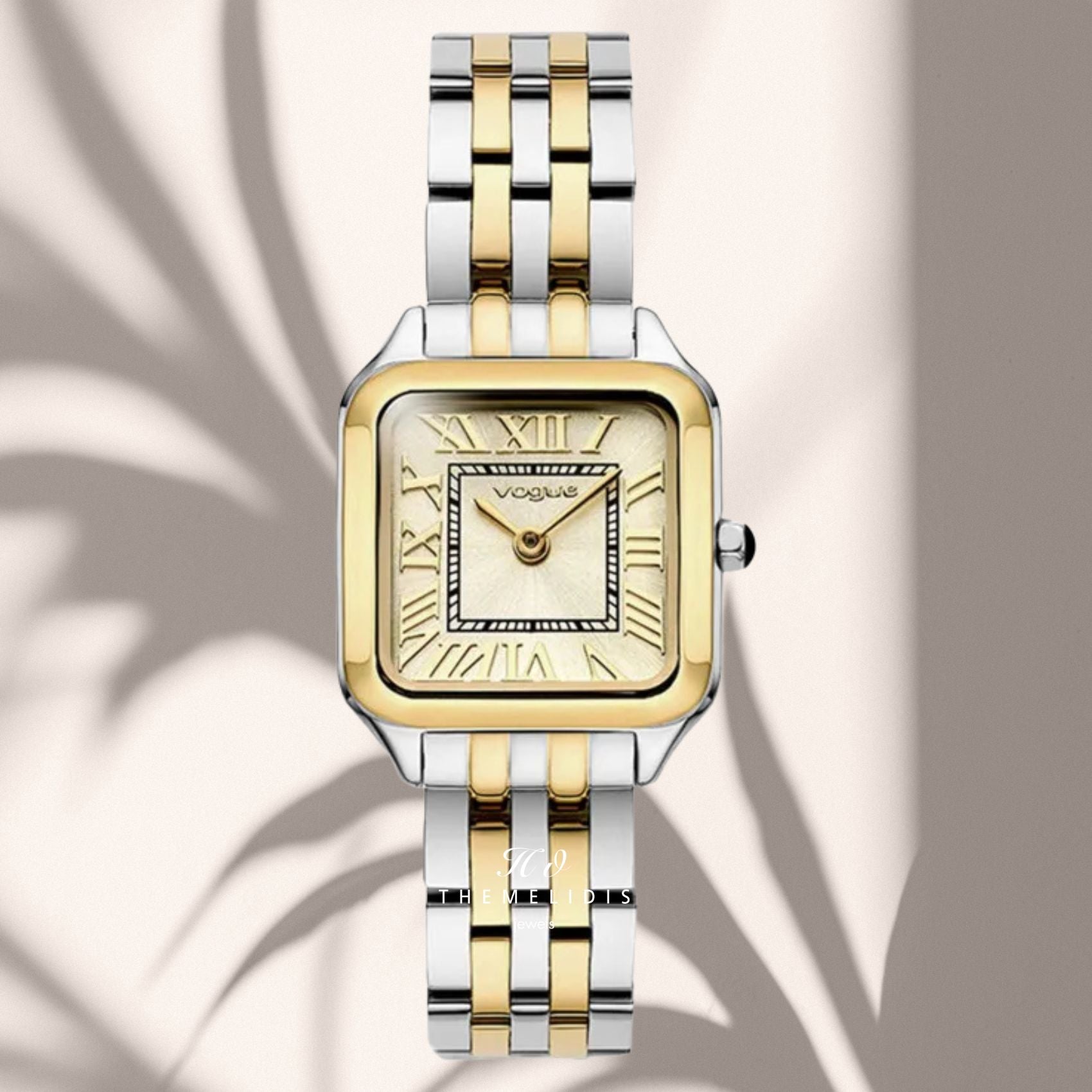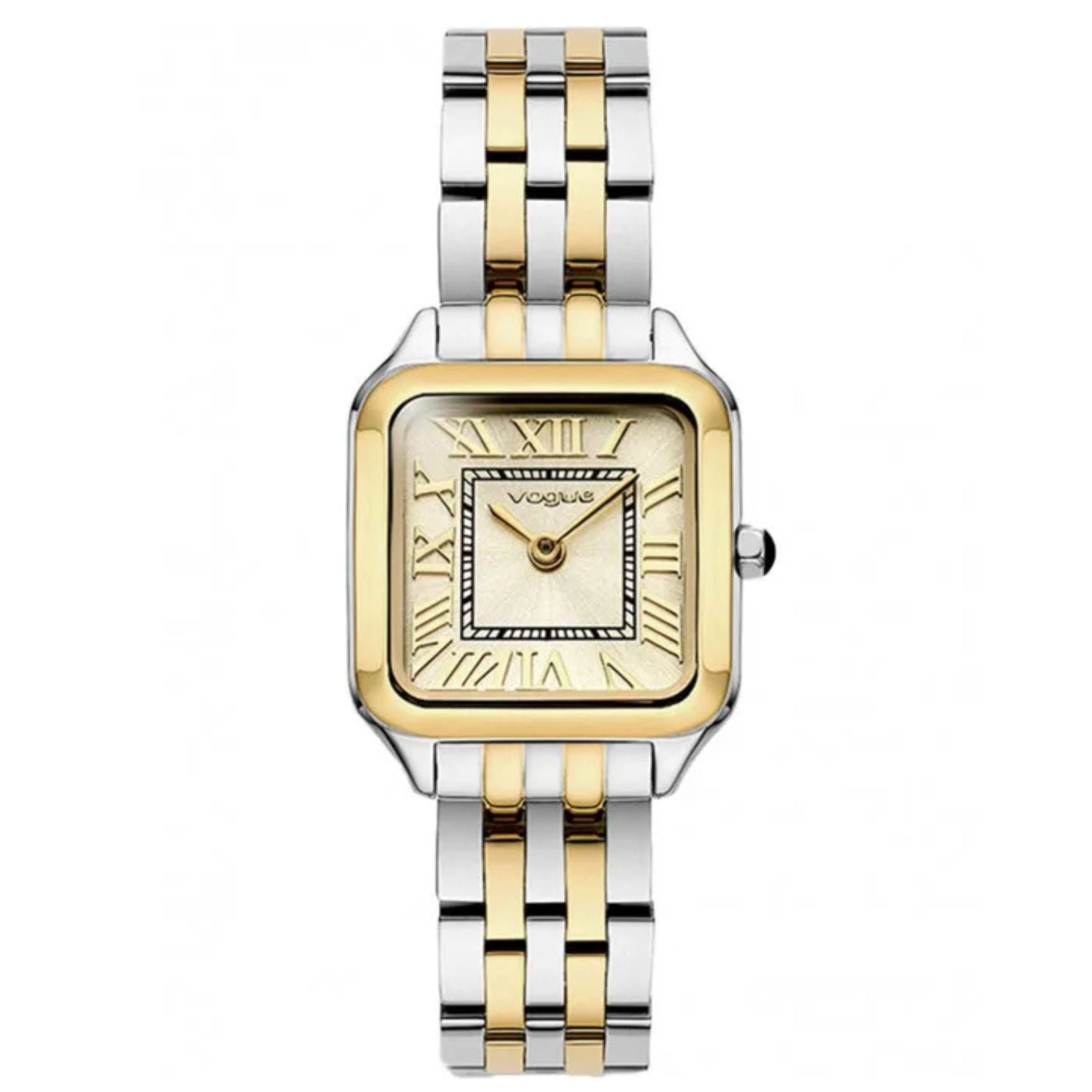 Γυναικείο ρολόι VOGUE Victoria Mini 2020615661 που συνδυάζει δίχρωμο μπρασελέ σε ασημί και χρυσό από ανοξείδωτο ατσάλι, σαμπανί καντράν και χρυσούς δείκτες με χρυσή τετράγωνη κάσα διαμέτρου 22x28mm. Το τζάμάκι του ρολογιού είναι από ορυκτό κρύσταλλο ειδικής σκλήρυνσης και έχει μηχανισμό μπαταρίας quartz. Το ρολόι έχει στεγανότητα στα 30M/3ΑΤΜ που το καθιστά κατάλληλο για απλή επαφή με το νερό.