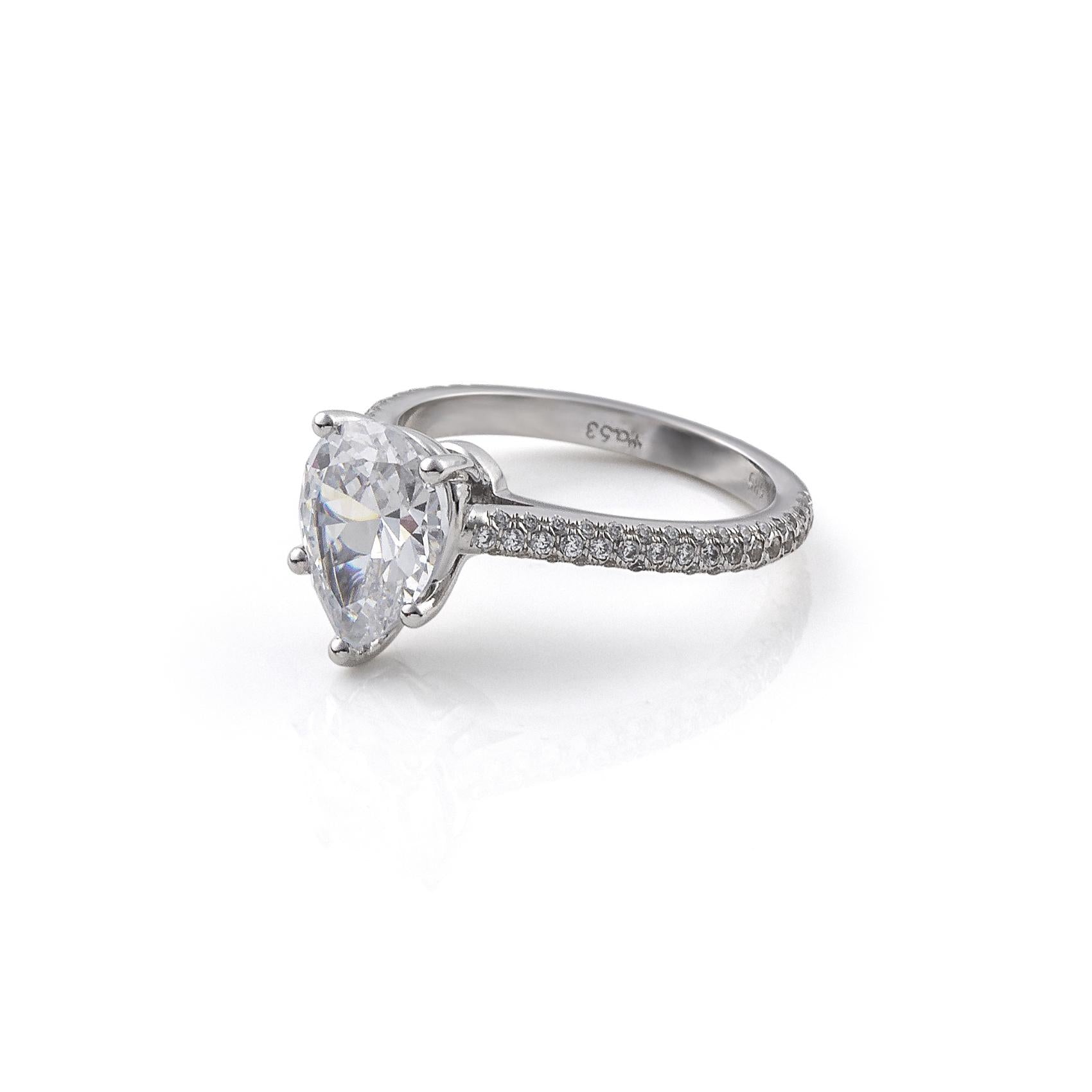 Αυτό το μονόπετρο δαχτυλίδι από λευκόχρυσο 14Κ ξεχωρίζει για την κεντρική πέτρα σε σχήμα δάκρυ, που χαρίζει μια πιο ρομαντική, εκλεπτυσμένη λάμψη. Το τετράδοντο δέσιμο αναδεικνύει το σχήμα και αφήνει το φως να περνά για καθαρό, φωτεινό αποτέλεσμα.