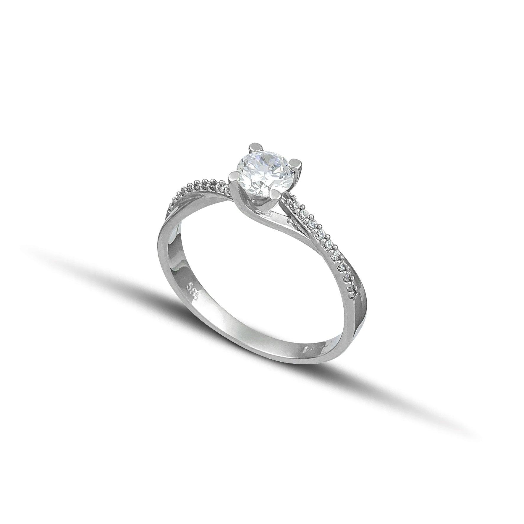 Μονόπετρο Δαχτυλίδι Φλόγα - Λευκόχρυσος 14 Καρατίων OS002
