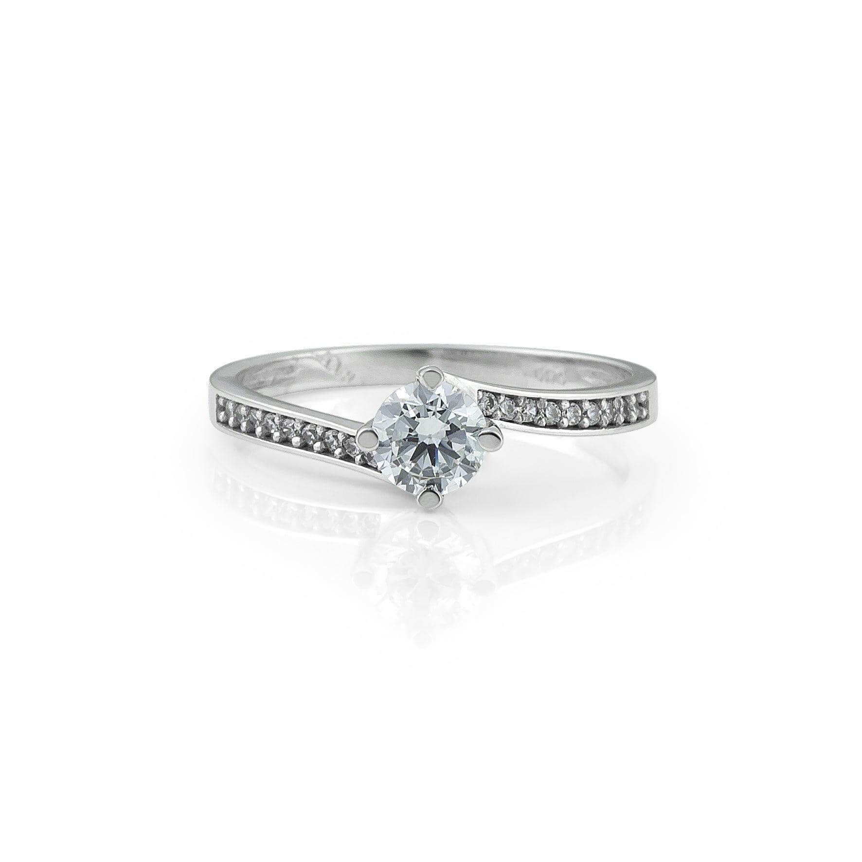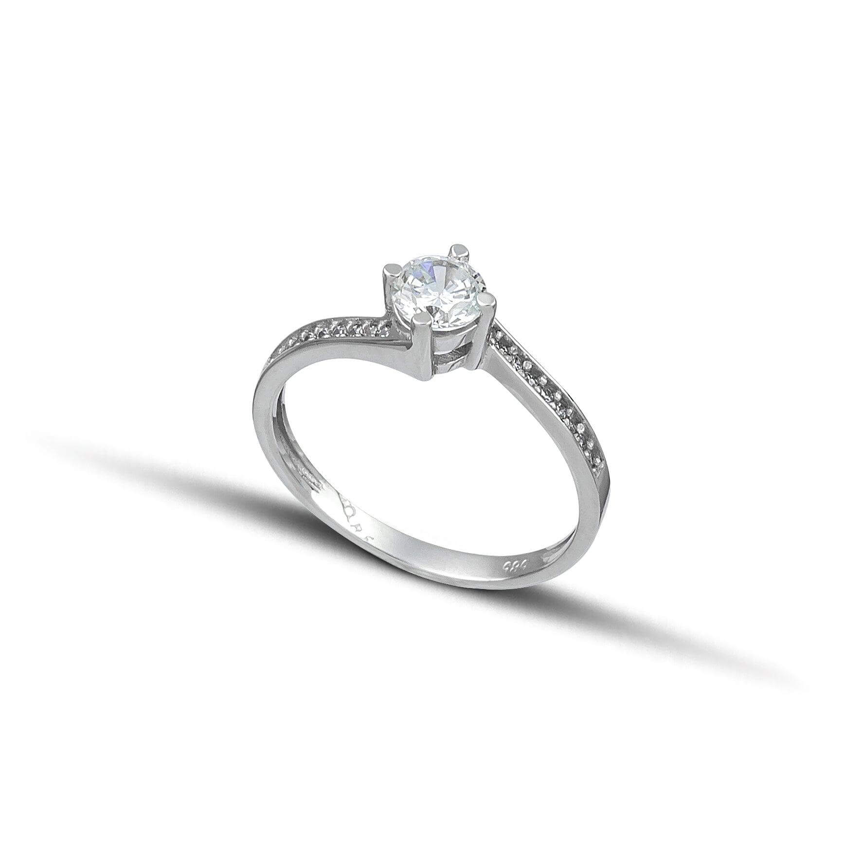 Μονόπετρο Δαχτυλίδι με Σχέδιο Φλόγας και Πλαϊνές Πέτρες Ζιργκόν - Λευκόχρυσο 14 Καρατίων OS006