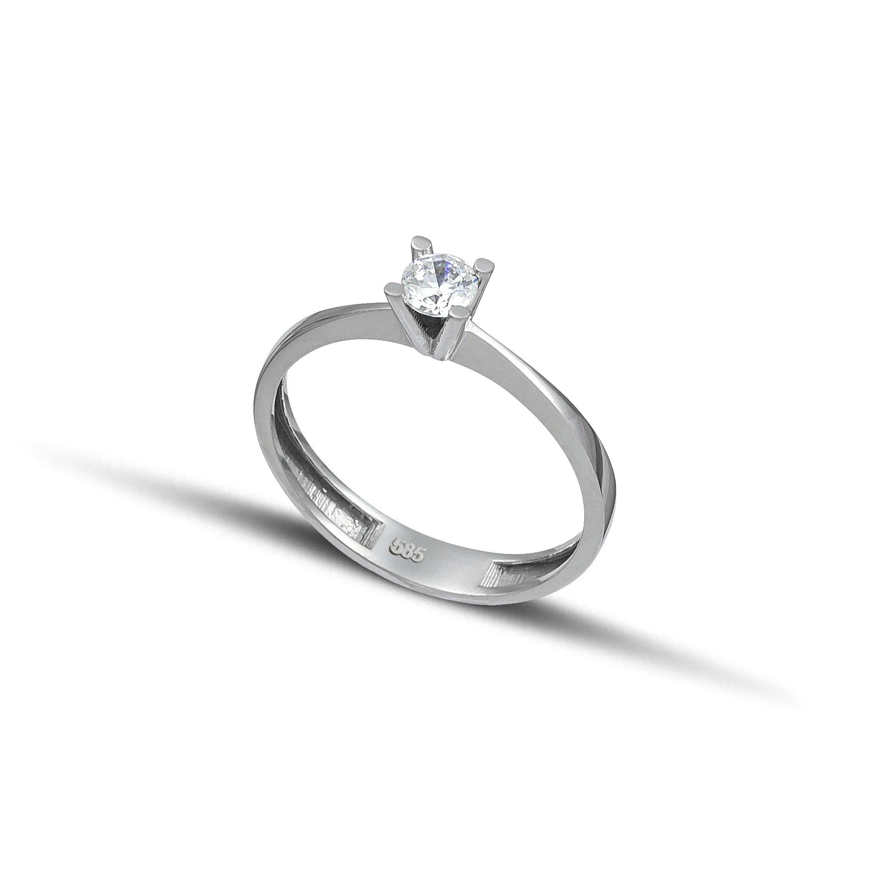 Μίνιμαλ Μονόπετρο Δαχτυλίδι Λευκόχρυσο 14Κ OS013