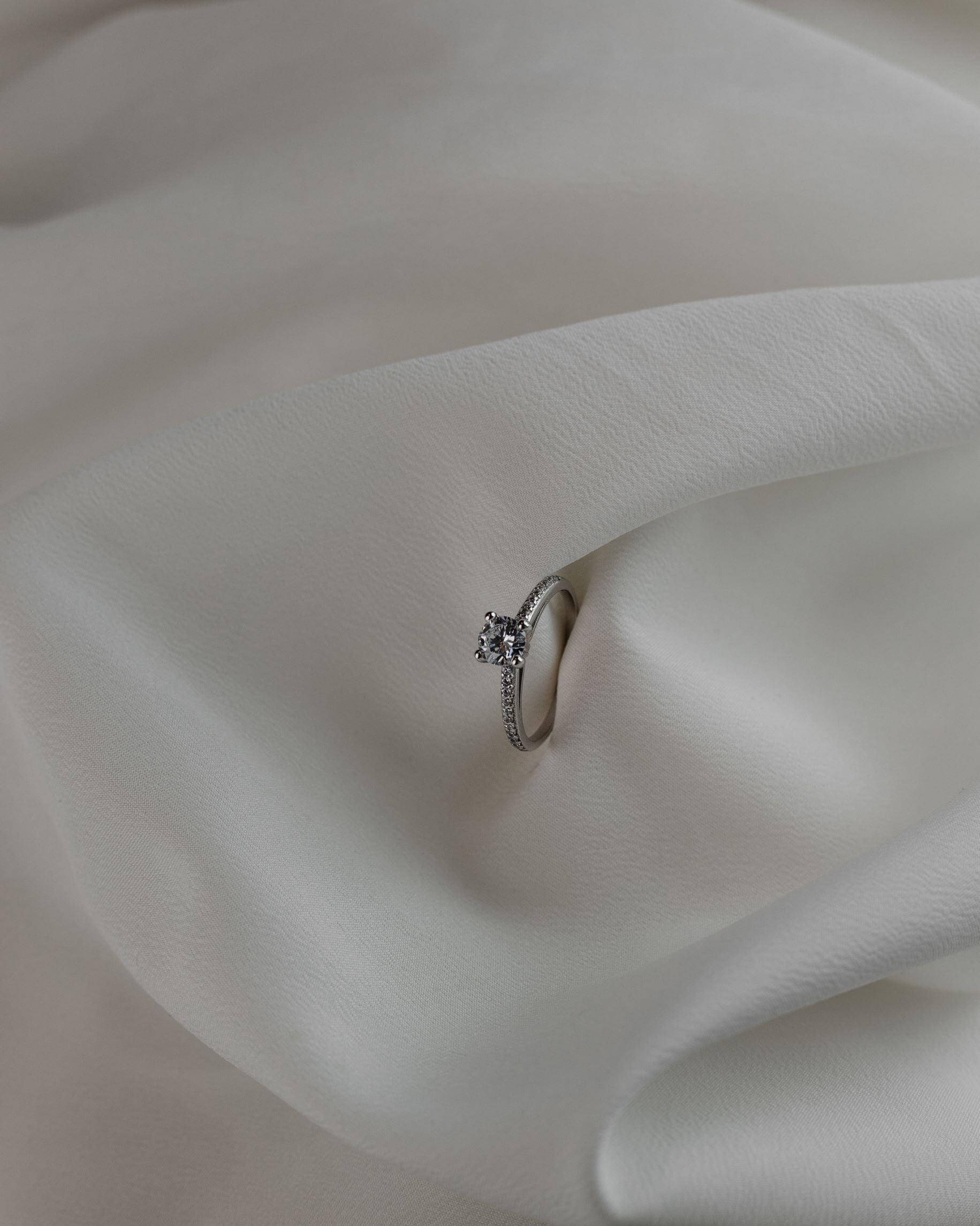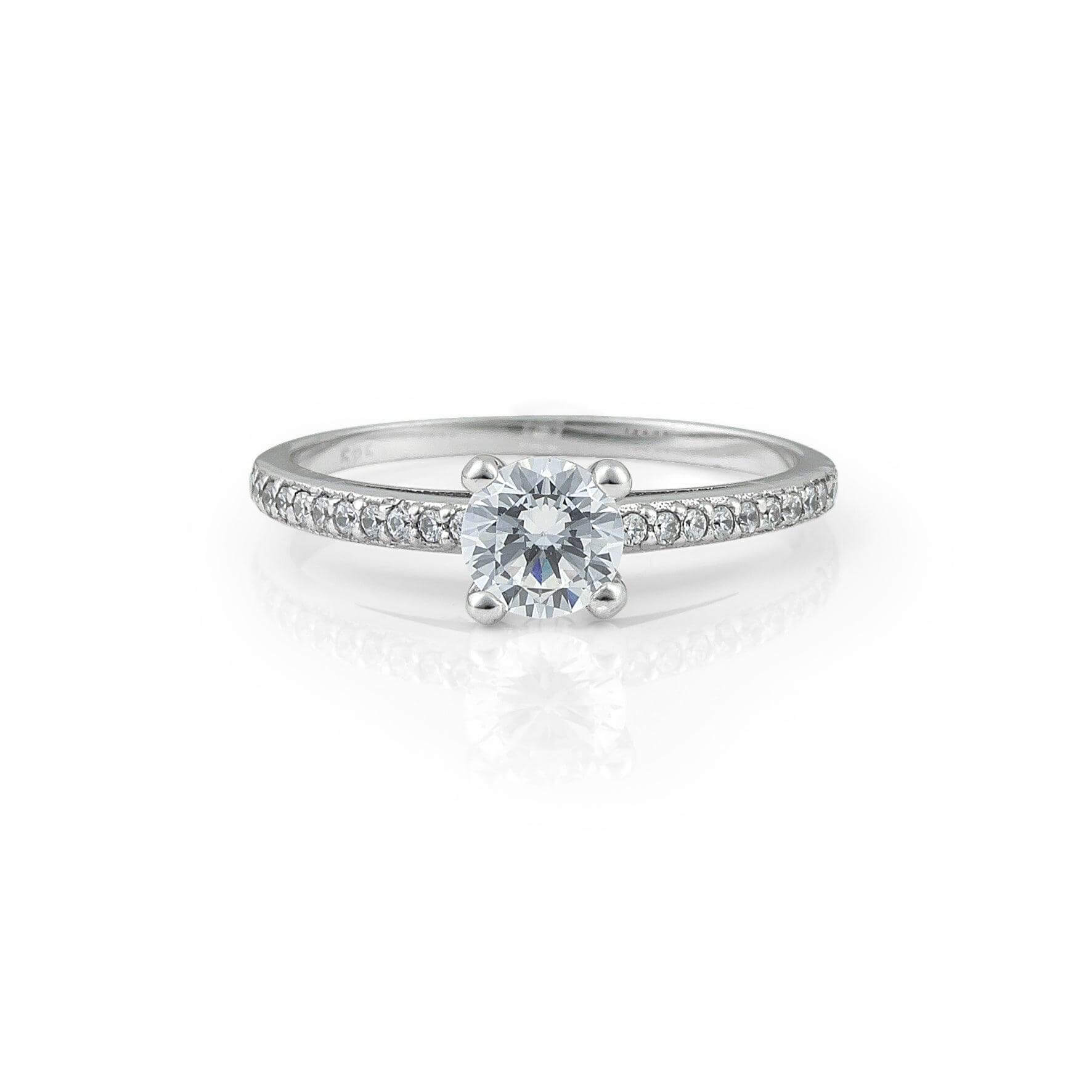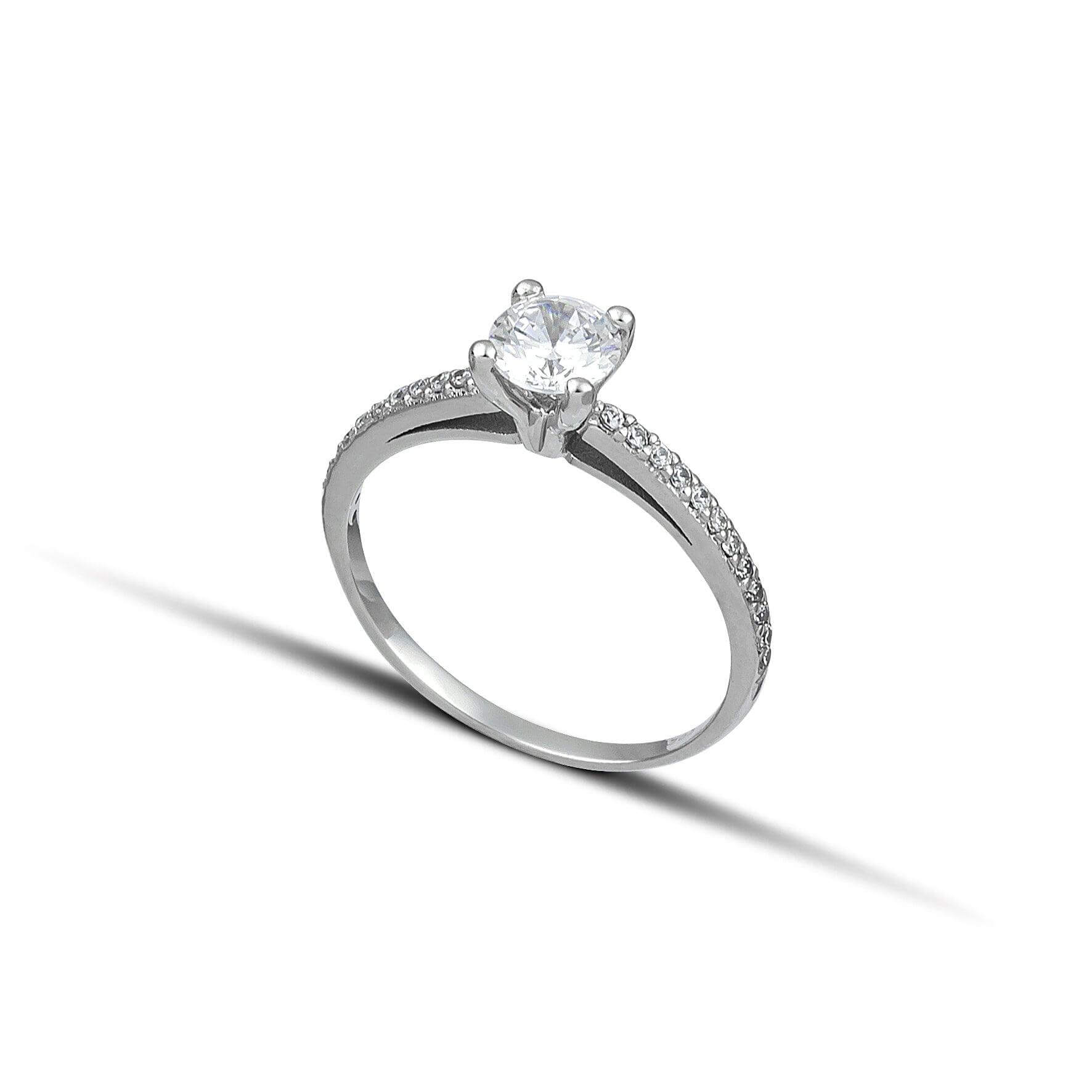 Μονόπετρο Δαχτυλίδι Λευκόχρυσο 14Κ με Πλαϊνές Πέτρες Ζιργκόν OS001