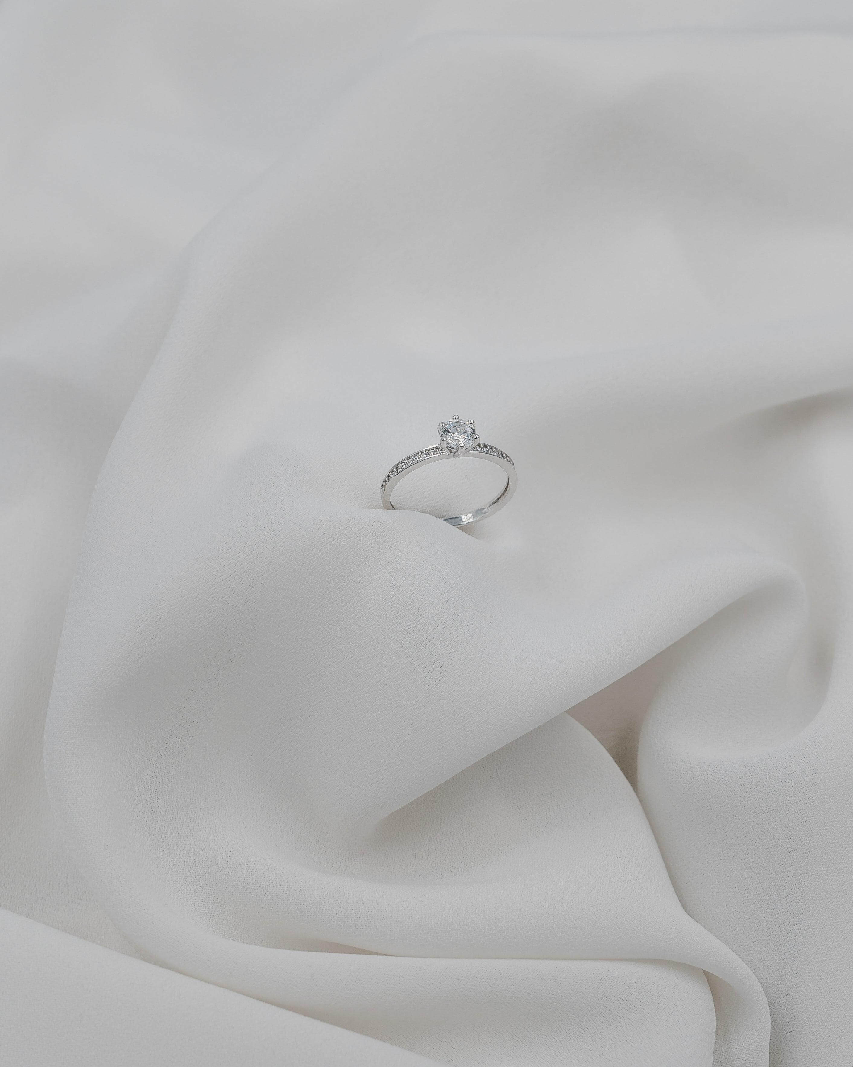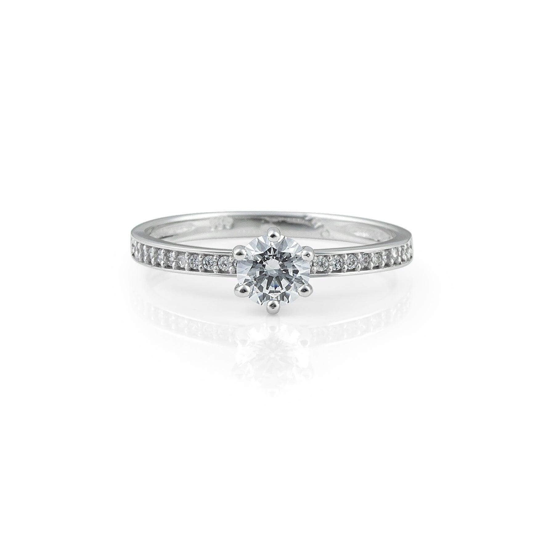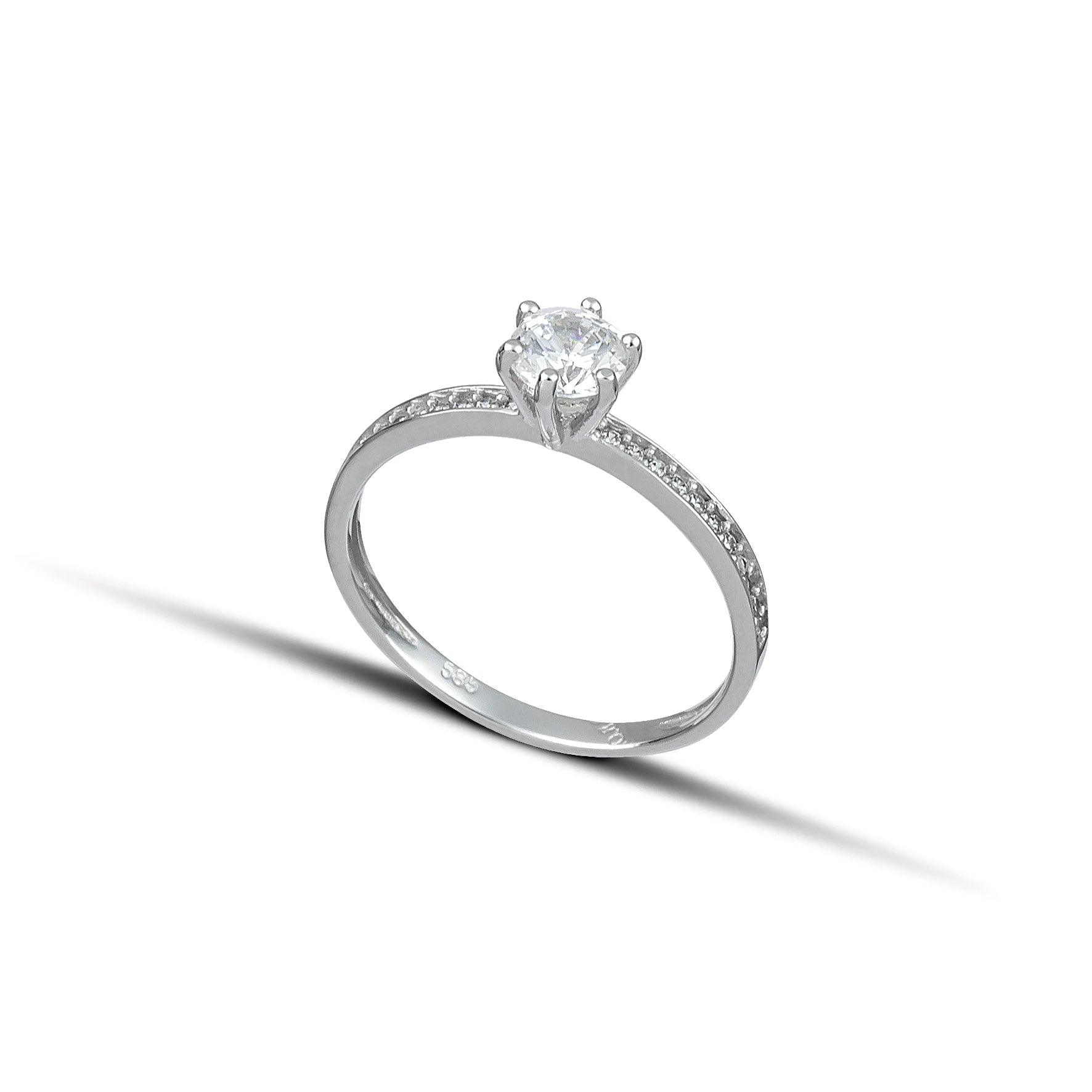 Μονόπετρο Δαχτυλίδι Λευκόχρυσο 14Κ με Πλαϊνές Πέτρες Ζιργκόν OS009