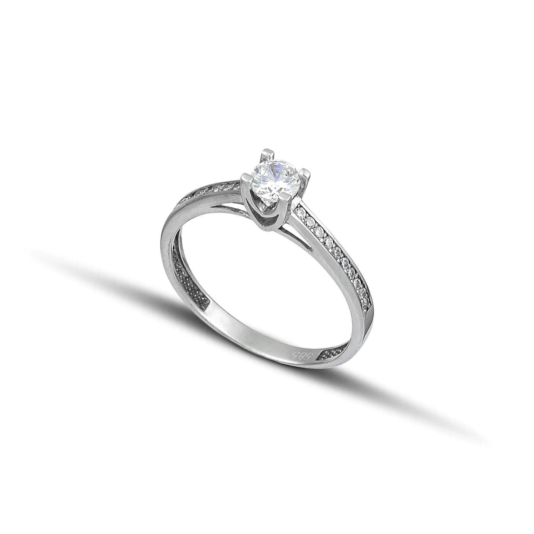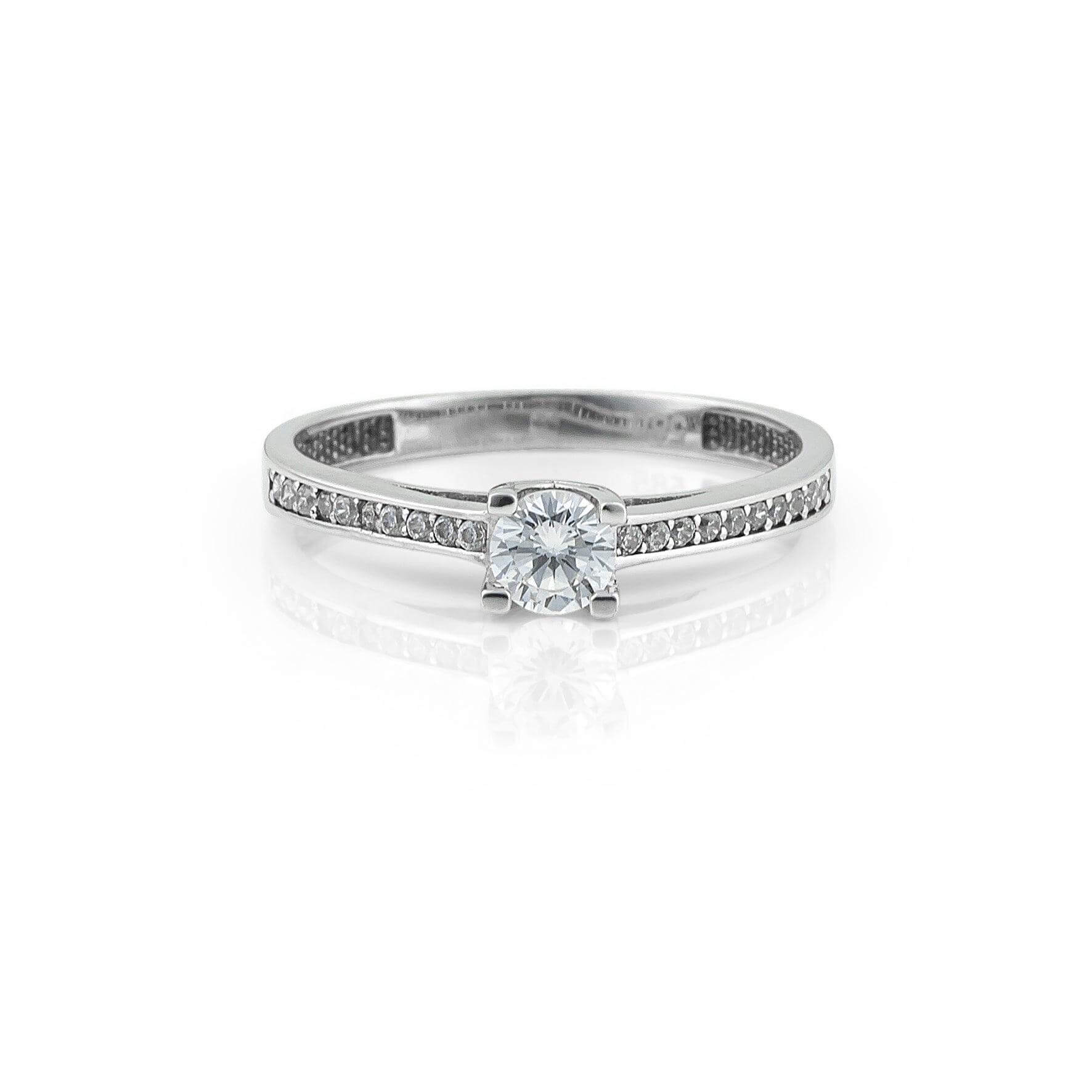 Μονόπετρο Δαχτυλίδι με Πλαϊνές Πέτρες Ζιργκόν Λευκόχρυσο 14Κ OS012