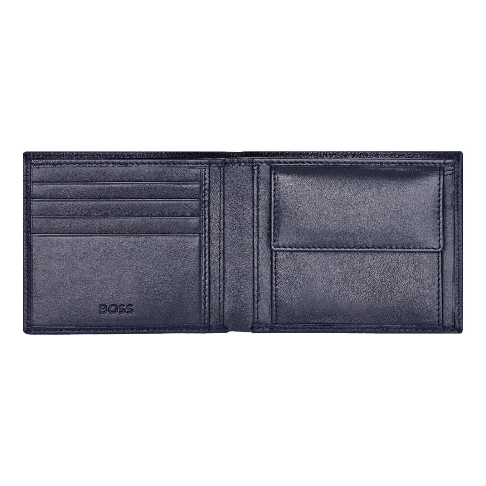 Ανδρικό δερμάτινο πορτοφόλι Hugo Boss HLM416N σε μπλε χρώμα. Μετατρέψτε την καθημερινή σας οργάνωση σε μια πολυτελή εμπειρία με το πορτοφόλι της σειράς Boss Classic Grained. Η εργονομική σχεδίαση εγγυάται άνεση και αντοχή στη χρήση, ενώ η πρακτική της διάταξη περιλαμβάνει θήκη νομισμάτων, 2 θήκες για χαρτονομίσματα, 4 θήκες για κάρτες, 3 πλαϊνές θήκες και 1 θήκη για νομίσματα.