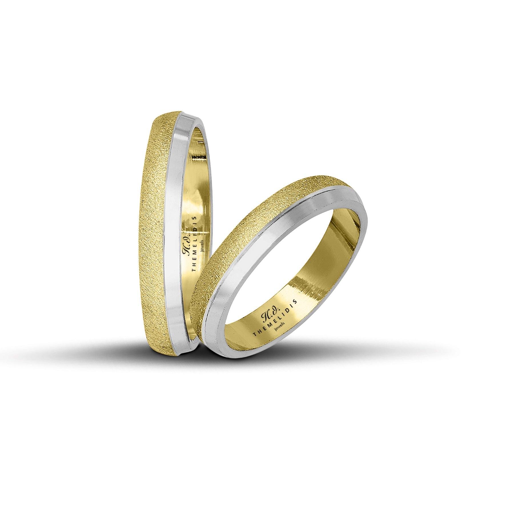 Δίχρωμες Βέρες Γάμου Λευκόχρυσες και Χρυσές 4 mm Λουστρέ με Ματ Γραμμή WR186
